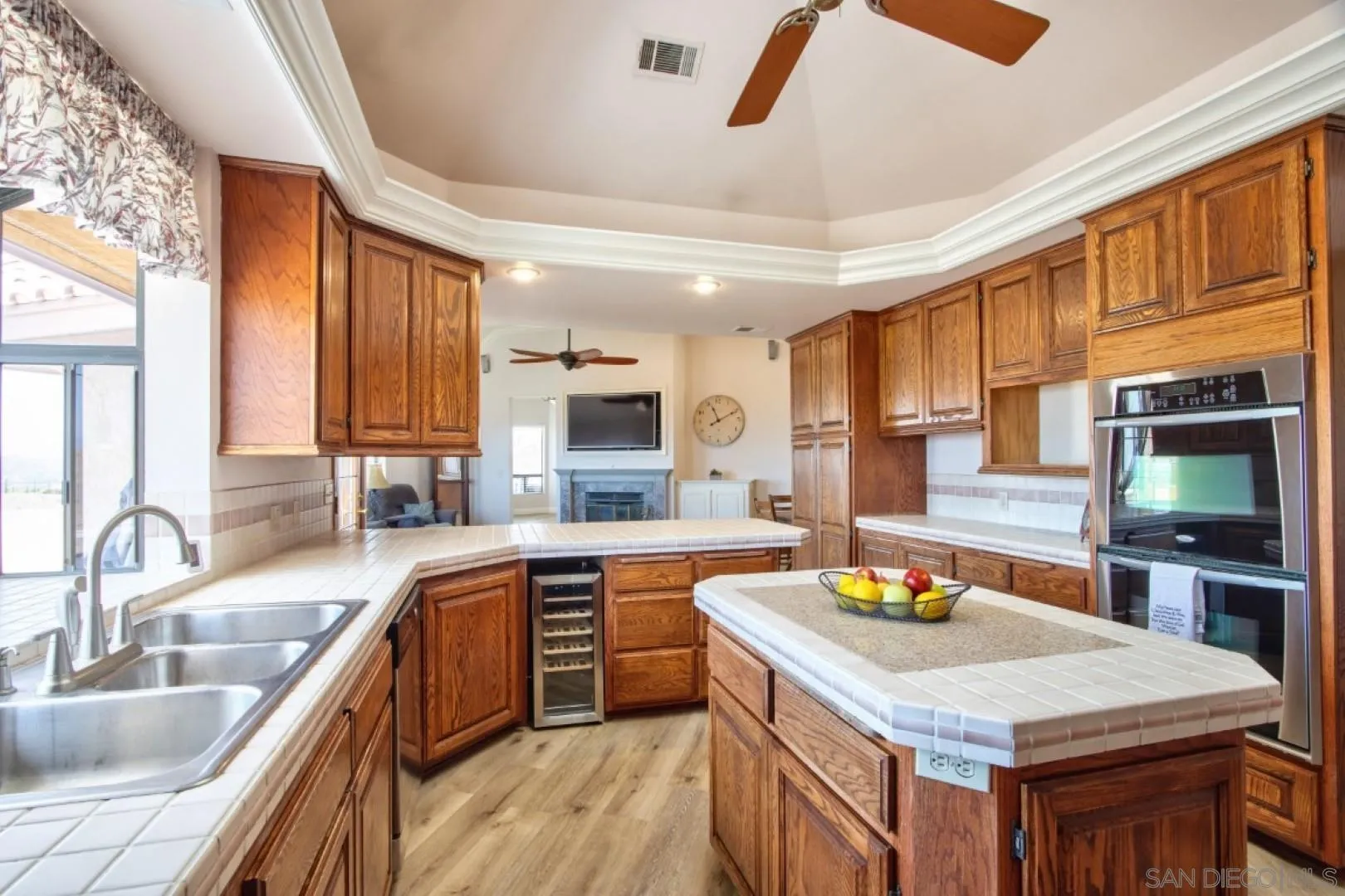 Incredible opportunity to own this custom-built Craftsman home with over 3,100 sqft of living space, perfectly situated in the beautiful Lake Mathews area on 2+ acres of expansive land and SOLAR SYSTEM. Built by the original owner who spared no expense, this home showcases exceptional craftsmanship throughout. Boasting two full levels of living space, this property is ideal for multi-generational families or those seeking additional rental income. The main level features three spacious bedrooms, including a luxurious primary suite with a spa-like bathroom with breathtaking lake views. The chef’s kitchen is complete with a center island, abundant counter space, and six built-in cutting boards, perfect for culinary creativity. Step out onto the expansive wraparound balcony and take in panoramic views of Lake Mathews on one side and San Bernardino Mountains on the other, all while enjoying the cool breeze. The main floor also includes a generous living room, formal dining area, and a cozy family room (wired for surround sound system) with a fireplace and elegant coffered ceilings, all contributing to the home’s distinctive character and charm. The lower level, with its own private entrance (and also accessible from the main home), features two large bedrooms, a full bathroom, a kitchenette, and a patio with sweeping views, ideal for extended family, guests, or as a private rental unit. Additional features include security camera system, tankless water heater, propane tank, pool table in garage and a beautiful lighted china cabinet in formal living room.
