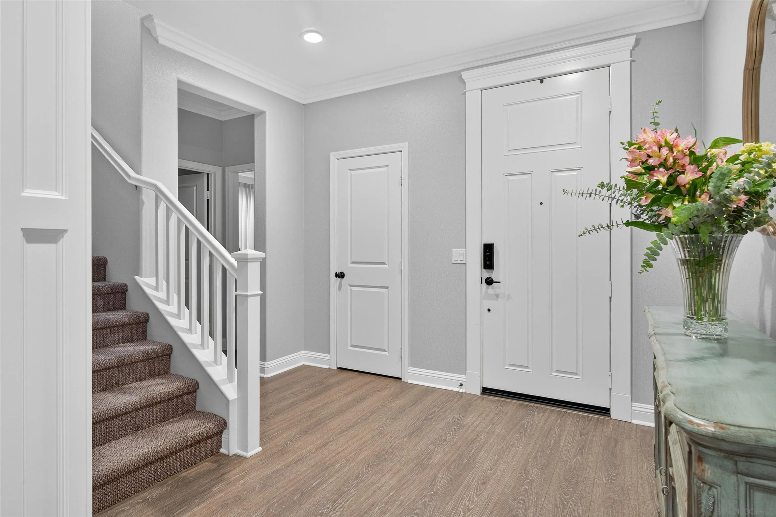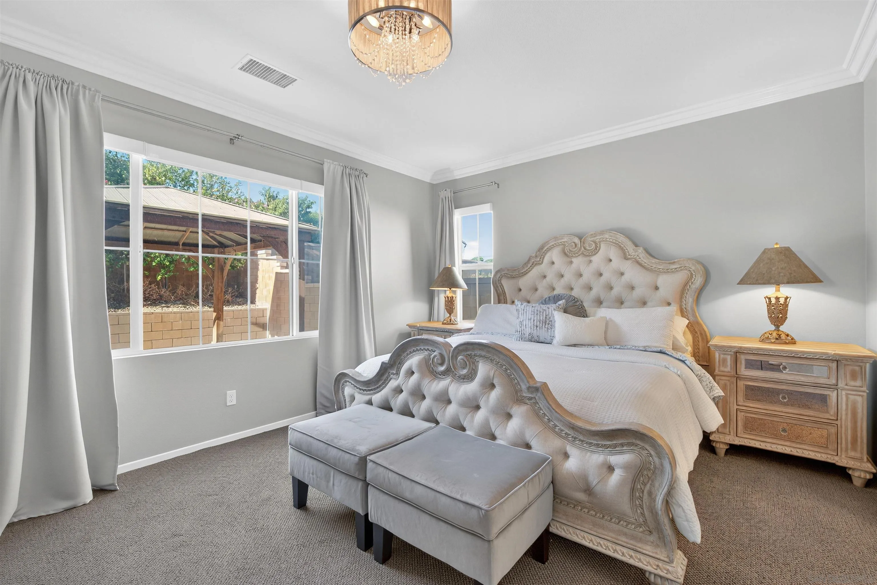 Step inside to an inviting open-concept floor plan with abundant natural light, ideal for both entertaining and everyday life. The gourmet kitchen features granite countertops, rich cabinetry, and a large center island that flows seamlessly into the dining and living spaces. A true highlight of this home is the first-level primary suite, offering a private retreat complete with a walk-in closet and spa-inspired ensuite bath. Also on the main floor, you’ll find a second bedroom and full bathroom, perfect for guests, multi-generational living, or a dedicated office. Upstairs, two additional bedrooms share a full bathroom, providing plenty of space for family, friends, or a growing household. The backyard is designed to be enjoyed year-round—ideal for hosting gatherings, barbecues, or simply relaxing outdoors. Built in 2017, this newer home is situated in the highly sought-after Ontario Ranch community, conveniently located minutes away from schools, 60 and 15 freeways, Ontario Airport, Ontario Mills Mall, Victoria Gardens, and Costco.