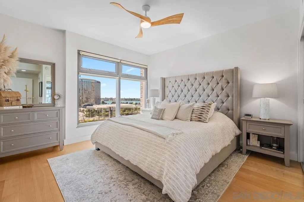 Experience elevated urban luxury in the heart of Downtown San Diego’s prestigious Marina District. This impeccably remodeled 3-bedroom, 3-bath residence is a rare find in the South Tower of Renaissance. Perched on the 12th floor, the home offers water views and abundant natural light through floor-to-ceiling windows, creating a seamless connection between vibrant city living and refined comfort. Completely reimagined kitchen, with rare natural granite, a Bosch paneled dishwasher, Sub-Zero paneled refrigerator, Hestan professional power range, and a custom bar area with Perlick double-drawer fridge and wine fridge. Additional highlights include maple hardwood floors throughout, a Samsung Frame TV with surround sound, and maple LVP flooring on the exterior deck. The Primary Suite impresses with a fully renovated spa-inspired bath featuring a freestanding tub, expanded walk-in shower, new cabinetry, and designer fixtures. The Junior Suite and third bath have also been transformed with custom showers in place of tubs, stylish new vanities, premium fixtures, and striking 24x48 porcelain slab tile. Practical luxury completes the home with two prime parking spaces (one extra-wide, one wide both with easy access) and a large storage locker with bonus storage, possibly the largest in the building.