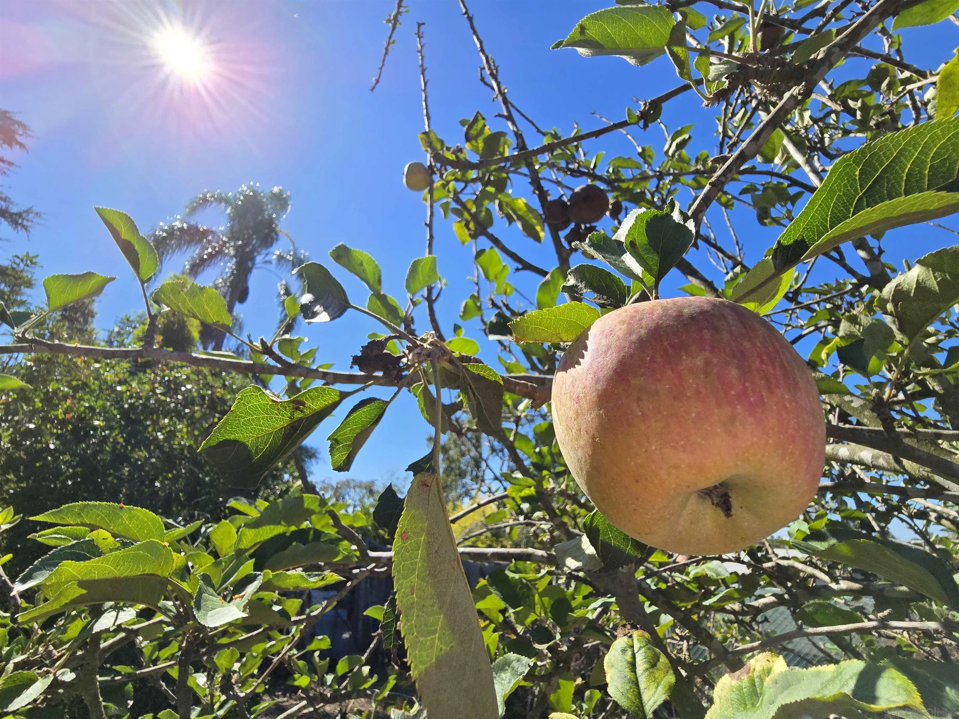 Welcome to this charming 3 bedroom, 2 bathroom with a bonus sunroom, not included in the sq. footage, orchard house single-story residence set on a generous 1.01-acre lot with over 80 mature fruit trees, offering comfort, character, and a delicious connection to nature in your own backyard. Fruit trees and an inviting Art Deco pergola grace the front entrance and patio, setting an earthy and stylish tone as you enter. The heart of the home features an updated kitchen that boasts vibrant custom cabinetry, sleek countertops, and stainless steel appliances—perfect for everyday living and effortless entertaining. Discover the convenience of a dedicated cooler room—a thickly insulated room ideal for extending the freshness of produce picked from the orchard. This versatile room also functions beautifully as a cool pantry or wine room. A large fireplace creates warmth and connection in the living room and a stunning sunroom spans the back of the home, capturing sweeping views of the orchard landscape and inviting you to bask in natural light through its array of windows. The thoughtful split-bedroom floor plan places two bedrooms and a full bathroom on one side of the home, while a private bedroom and additional bathroom create an ideal retreat on the other. A deck off the back of the house allows for outside entertaining/relaxing with an orchard view and an additional covered deck off of the side of the house can be used for gathering in the shade or keeping exercise equipment out of the rain.