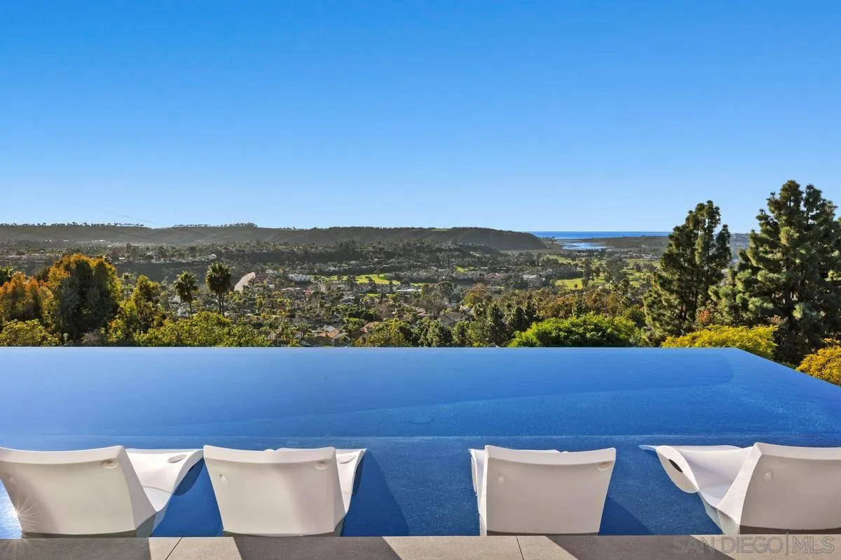 Seller will entertain offers between $6,500,00 and $7,200,000. This hilltop home in Carlsbad, California, has been transformed into a breathtaking modern sanctuary. Set on a one-acre lot with sweeping views of the Carlsbad lagoon and Pacific Ocean, the property underwent a comprehensive remodel that blends contemporary elegance with purposeful functionality. Inside, the home features a mix of bespoke elements—from custom sofas and a liquid metal-finished fireplace to thoughtfully curated artwork that highlights local talent. Clever design choices, like a hidden pantry door and a discreet cooking station, bring both practicality and charm to the kitchen. The primary bathroom includes a spa-like wet area, creating a private escape within the home. Outdoors, an infinity-edge pool appears to flow directly into the ocean, while the beautifully landscaped grounds offer a peaceful setting for both relaxation and entertaining. This reimagined residence captures the essence of modern California living, where elevated design meets timeless comfort. ***