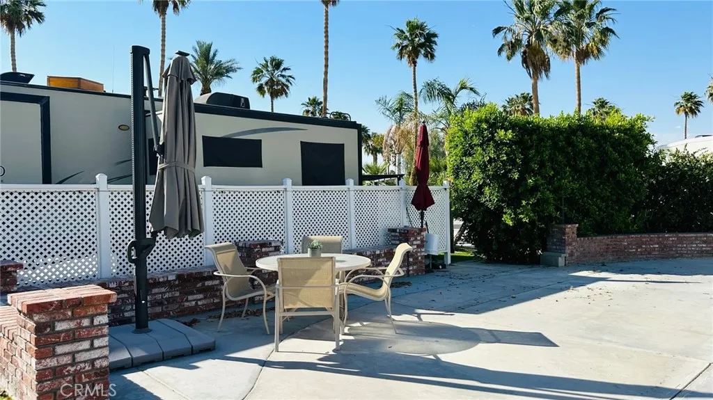 Motivated Seller of this expanded turnkey lot in Phase 6 just a few short steps from El Seguaro Club House, Owners Lounge, Lap & Kids Pool, Pickleball Courts and Golf Starter Shack. Located on a quiet street, includes clean concrete, brick pony wall, exterior lighting, privacy hedge on rear of the lot, vinyl fencing on the West & East sides of the lot, patio table with seating for 4, table umbrella and cantilever umbrella. Resort required lot inspections have been completed with everything in compliance, bring your RV, Fifth Wheel or Travel Trailer (24' or larger is the resort requirement), and start enjoying this family friendly resort. Outdoor Resort Palm Springs is a Premier RV Resort and Country Club. Featured on each of the 1,213 sites are metered 50-amp electric service, water, sewer, and cable services (at owners' expense). Enjoy resort living on 137 beautifully landscaped acres with 27 holes of executive golf, 10 tennis courts, 13 pickleball courts, 8 swimming pools, a dog park with separated areas for large and small dogs, a fully equipped fitness center, a beauty salon/barbershop, cafe, two clubhouses and so much more. With so many amenities to enjoy, the Resort offers a truly memorable experience.