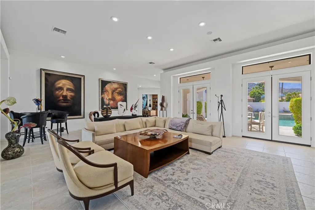 30-day minimum rental. Welcome to your desert oasis nestled within the prestigious Citrus County Club in La Quinta. This exquisite 4-bedroom, 3.5-bathroom home offers unparalleled luxury living on the 5th fairway of the Pete Dye Course and offers a sprawling golf course landscape. This light, airy and bright, custom home takes advantage of the South, West and North East exposure. Step inside to discover a haven adorned with beautiful artwork, enhancing every corner with elegance and charm. The spacious layout boasts a seamless blend of sophistication and comfort, featuring expansive living areas perfect for entertaining guests or enjoying quiet evenings with family. The gourmet kitchen is a chef's dream, complete with top-of-the-line appliances, gas cooktop, built-in fridge, custom cabinetry, and a generous island for culinary creations. The center island is well located between a dining room area facing the pool and courtyard and a formal dining room facing the golf course views. Retreat to the serene master suite, where relaxation awaits amidst panoramic views of the surrounding fairway greenery. Pamper yourself in the spa-like ensuite bath, featuring lavish amenities and a rejuvenating soaking tub. An additional en suite bedroom in the main house offers ample space and privacy for family members or guests. There is an office as well as a powder room in the main house. The other two guest bedrooms are located n the casita which have a jack and jill bathroom. These bedrooms have their own entry and open directly onto the courtyard with views of the beautiful salt water poo