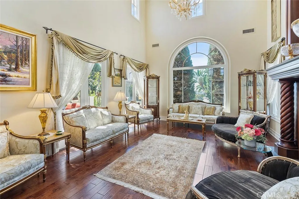 Welcome to 11755 Collar Ave. This luxurious oasis is nestled in one of the most coveted locations within the prestigious 24-hour guard-gated community of Tustin Ranch Estates. This stunning 5,900+ sq. ft. residence offers breathtaking views, mesmerizing sunsets, and picturesque vistas of Catalina Island, all from a peaceful, single-loaded cul-de-sac street. Situated on a sprawling 16,000 sq. ft. lot, the home boasts a seamless blend of elegance and privacy. With its spacious layout, upscale finishes, dual staircase, and panoramic surroundings, this estate invites you to experience an unparalleled lifestyle of comfort and sophistication. This former builders model home was thoughtfully designed with premium upgrades, offering a luxurious yet comfortable living space. Every detail has been meticulously crafted to elevate the home's elegance, from high-end finishes to custom features, providing an exceptional blend of style and functionality. Whether enjoying the expansive indoor areas or the breathtaking outdoor views, this home delivers an unparalleled living experience. The kitchen is a chef's dream, featuring custom-made cabinetry and ample storage. Equipped with a double oven, built-in refrigerator, and a 6-burner cooktop, this space is designed for both cooking and entertaining with ease. On the first floor, you'll find a primary en-suite, a formal study with a fireplace, a bright family room, a breakfast nook, and a formal living room with an astonishing wood-carved fireplace and cathedral ceilings. A formal dining room and a bar enhance the home's entertainment capabil