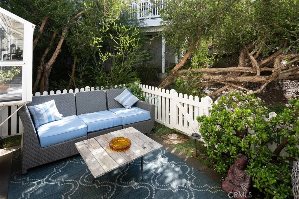 Your Coastal Retreat Awaits in Dana Point! Indulge in the ultimate getaway at this stunning Cape Cod-style end-unit townhome, just minutes from Dana Point Harbor. Fully furnished and designed for comfort and luxury, this 2-bedroom, 2.5-bath retreat offers a perfect blend of elegance and relaxation.Step inside to soaring high ceilings, abundant natural light, and a cozy fireplace in the inviting living room. Charming windows frame picturesque views of lush greenery, creating a serene and private atmosphere. Sliding doors lead to a tranquil deck, ideal for unwinding with a glass of wine while savoring the gentle ocean breezes.Throughout the home, luxury vinyl plank flooring adds warmth and effortless style. The remodeled chefs kitchen is a culinary dream, featuring gorgeous quartz countertops, a designer backsplash, recessed lighting, premium Bosch stainless steel appliances, and a spacious pantry. Just outside, the private back patio is perfect for alfresco dining, barbecuing with on-demand gas, or simply curling up with your favorite book. A combined pantry and laundry area off the kitchen ensures convenience throughout your stay. Upstairs, a beautiful skylight illuminates the staircase leading to two luxurious ensuite bedrooms. The primary suite is a sanctuary of its own, complete with a king-sized bed, romantic fireplace, walk-in closet, and breathtaking mountain and treetop views. The spa-like primary bath boasts a large walk-in shower and sleek quartz countertops. The second ensuite bedroom offers its own private bath with elegant finishes. This home is also equipped wi
