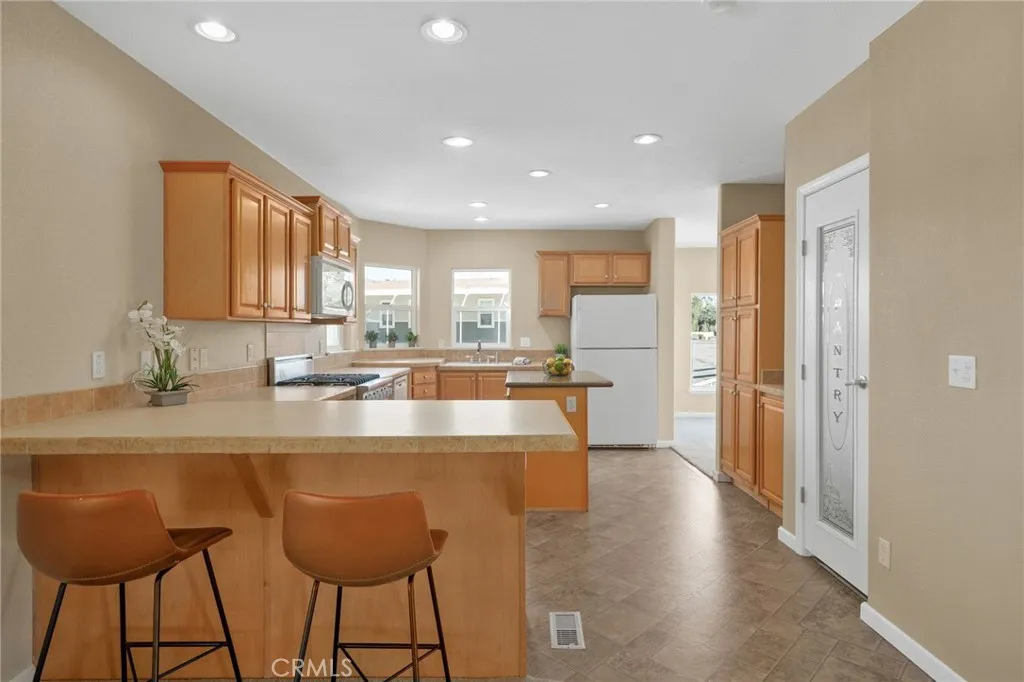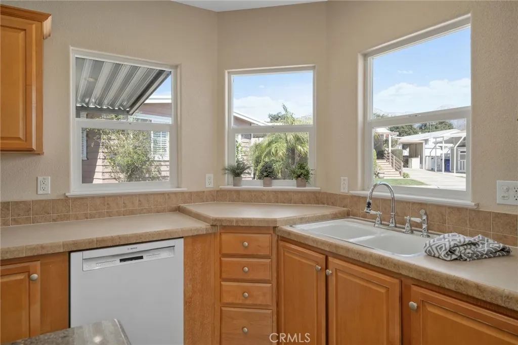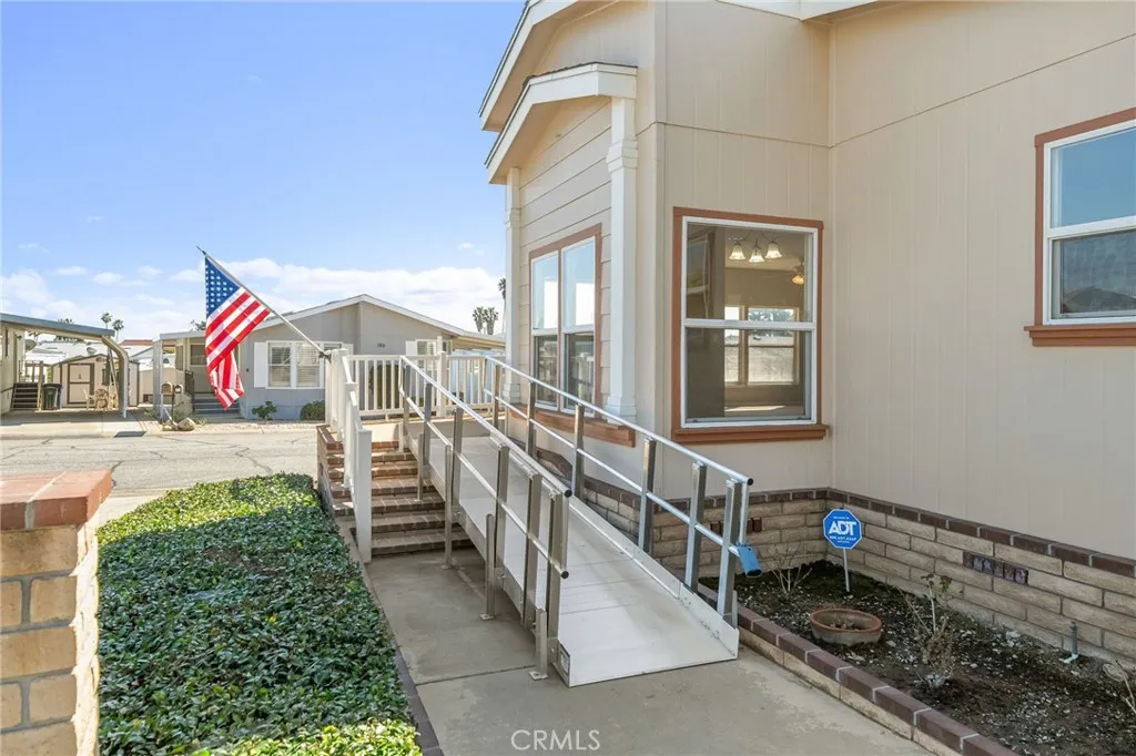 Located within the highly-desired Upland Eldorado 55+ community, this 2,158 square foot home will amaze you. It has a beautiful amount of light and 4 bedrooms and 2 bathrooms and it's just the home you've been waiting for. A great location on a corner lot in a quiet cul-de-sac with gorgeous mountain views from the deck as well as the kitchen and dining room. Inside the home you will find it has been well maintained and there are so many awesome features. The primary suite has a walk-in closet as well as an en suite bath with two sinks, linen storage and a separate tub and shower. The kitchen is open to the family room and is fit for a chef with a Viking range, Bosch dishwasher, prep island, roll-out drawers and a butler's pantry! There is a formal living and dining space as well as an open area between the bedrooms that could be utilized as an office or sitting area. The laundry room comes complete with washer and dryer and there is space for a second refrigerator or freezer. Some of the additional features of this home are: Freshly painted interior, new roof in 2022, new garbage disposal, newer a/c and water heater. There is also a water filtration system, shed, accessibility ramp and garden bed with water. This park is well-maintained by all the residents and has rent control for your peace of mind. The clubhouse common area is complete with commercial kitchen area, billiards, indoor spa, large pool and shuffleboard.