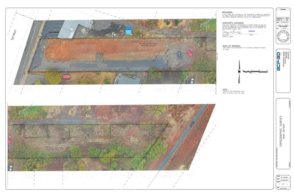 Prime Commercial Opportunity on Skyway! 7654 Skyway is a spacious commercial property on a 1.38-acre lot (60,113 sq. ft.). Located on a high-visibility corridor, this ready-to-build site offers ample space for your next business venture. PID water service is active and paid. See supplements to view current civil survey. Don't miss this opportunity to establish your presence in a growing community!
