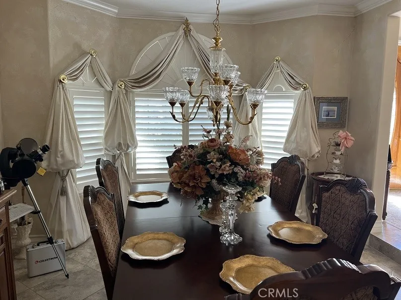 Start living your dream in this paradise that embraces comfort, luxury, tranquility, and elegance. Ideally planned on a quiet Cul-De-Sac with breathtaking views of summer sunsets, and mountain views. Property entrance with a custom automated iron gate with secure digital and remote access. Extra-long driveway for multiple RVs and a Grand RV garage large enough for a 42-footer RV. Landscaped with meticulous care and drought resistant plants in the front, and grass in the back for children to play. Mature trees and fruit trees throughout. Elegant entrance with exquisite double solid wood doors and ceramic tile floor throughout first floor. Spiral elegant wood stairway casing professionally crafted in the front and a 2nd stairway access in the back for casual access or service access. Inviting formal living room with cathedral ceilings and luxury chandelier lighting. Mediterranean style formal dining room, Classic grey granite counter tops over oak kitchen cabinets. Kitchen equipped with double stainless-steel ovens, microwave oven, dishwasher, food warmer, stainless steel stove, and a separate ice maker. Plantation shutters throughout the whole house and some rooms with custom window decorations. Chandeliers and ceiling fans. Burbon carpet and professionally installed ceramic tile. 6-inch baseboards and crown molding throughout the home. Purchased 47 solar panel system that generates enough electricity to power the entire estate at an estimated savings of 85%. Intercom system, dual ac units with their own thermostats, central vacuum system, and alarm system. 3 of the 5 bedroo