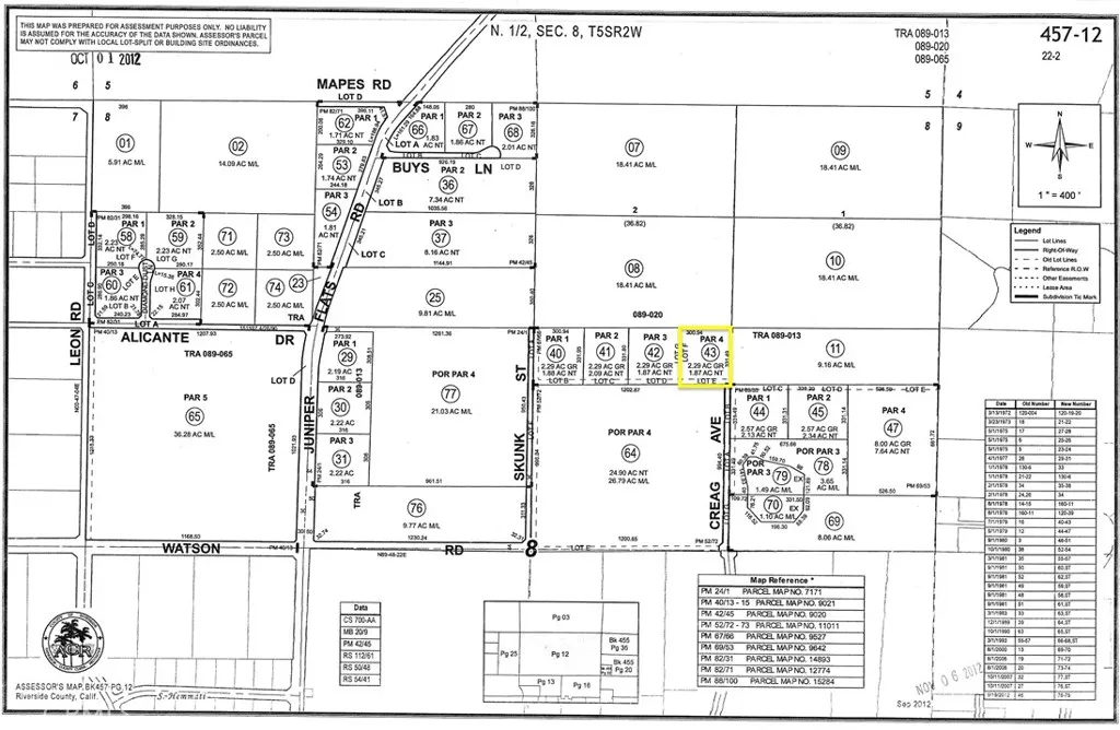 Discover 2.29 acres in the growing community of Homeland, in Southwestern Riverside County, CAan ideal location to build your custom home, horse ranch, family compound, or private retreat. This spacious parcel features 300 of frontage on Skunk St. easement and 300 along the Easterly boundary, offering plenty of space for homes, barns, garages, stables, sheds, gardens, orchards, and vineyards. Located in a propane and septic tank area. Utilities are provided by SCE and EMWD. Water is approximately 700'+- South on Creag Avenue on the Southwestern corner of parcel -078. Sewer is approximately 2,500'+- south on Creag Ave. With NO HOA, you can bring your RV, camper, trailer, or 5th wheel and start enjoying the land immediately. Plus, bring all your animals too! Explore the surrounding hills, ATV-friendly roads, native habitat, and stunning rock outcroppings, all while being just minutes from schools, parks, churches, stores, and essential services. Centrally located in Riverside County, this property provides easy access to I-215, I-15, Hwy 74, Hwy 79, and the 10, 60 & 91 freeways, making commuting to Los Angeles, Orange, San Bernardino, and San Diego Counties effortless. With nearby shopping outlets, casinos, lakes, mountains, and deserts, this land offers endless recreational and investment potential. OWNER MAY CARRY!