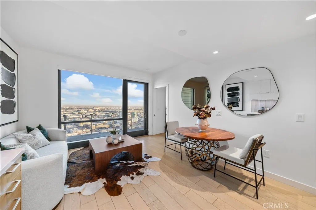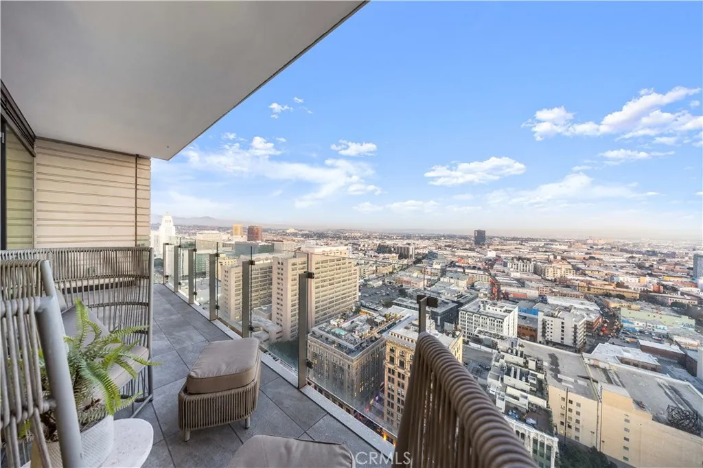 Welcome to Perla on Broadway, an exceptional 1-bedroom, 1-bathroom condominium on the 31st floor of Downtown LAs premier luxury high-rise. This is the most affordable unit with a private balcony on this floor, featuring a 142 sq. ft. balcony with breathtaking views of the Hollywood Hills, Downtown LA skyline, and vibrant cityscape. Both the living room and bedroom showcase floor-to-ceiling windows that flood the space with natural light, complemented by roller shades in the living area and blackout drapery in the bedroom for optimal comfort. The open kitchen is a chefs dream with Bertazzoni stainless steel appliances, polished quartz countertops, and self-closing cabinetry. The luxurious bathroom boasts a custom sliding door, resort-style stone finishes, and a deep soaking tub. Additional conveniences include a Bosch washer/dryer, fiber-optic pre-wiring, and energy-efficient LED lighting. Located near the elevator, the unit also includes a parking space conveniently close to the building entrance and exit.Perla offers over 44,000 sq. ft. of resort-style amenities, including a rooftop pool, spa, two-story fitness center, gaming lounge, private theater, and multiple work and social spaces. The expansive rooftop terrace features BBQ areas, fireside seating, and 360-degree views of Downtown LA. With 24-hour concierge and security, youll enjoy peace of mind and luxury living every day. Located in the Historic Core, Perla is steps from Grand Central Market, the iconic Bradbury Building, Pershing Square, and close to the Walt Disney Concert Hall, MOCA, and Grand Park. With easy Me