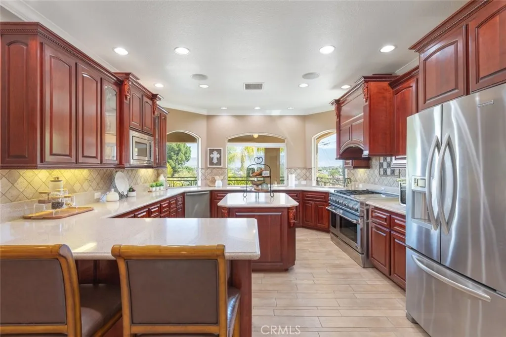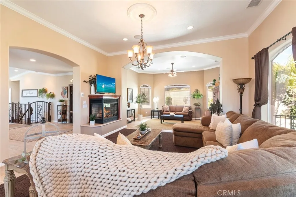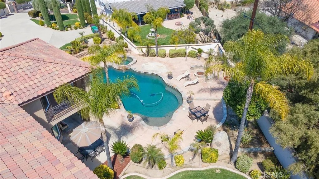 BACK ON THE MARKET AT NO FAULT OF SELLERS! PRICE IMPROVEMENT! Their loss is your gain! This exquisite custom built estate features over 6,000 square feet of living space, 5 bedrooms, 4 bathrooms, including 2 primary suites, 2 kitchens and Italian tile flooring throughout! Perfect for multigenerational living! A chef's dream, the professional style kitchen includes custom cabinetry, double oven, 5 burner stove with griddle, large island and other premium appliances. Gather around the fireplace in the living room while entertaining and enjoying elegant dining. Step out onto the spacious deck for unparalleled views of the mountains and valley. The lower level is perfect for additional family living or guests. Adjacent to the downstairs living area is an additional kitchen complete with custom cabinets and all of the desirable amenities. The theater room is designed for the ultimate movie or gaming experience. Continue outside for your own personal resort style living with a flagstone, pebble tech, salt water pool and spa. Gather around the fire pit to complete the evening. Additionally, the attached 3 car garage is complete with custom cabinets and epoxy floors as well as a detached oversized 2 car garage making this property highly desirable! Schedule your private showing today!