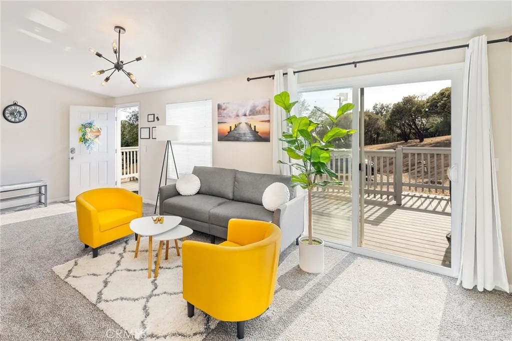 5.5 Acres of Tranquility & Panoramic Views! Welcome to your private mountain sanctuary, perfectly positioned on 5.5 picturesque acres with sweeping views of the majestic Sierra Nevada. The main residence is a charming 3-bedroom, 2-bathroom home thoughtfully situated at the top of a gently winding driveway. From the front rooms, enjoy breathtaking mountain vistas, while the shaded back porch and private hot tub offer a peaceful retreat among the trees. Inside, a vaulted knotty cedar ceiling adds rustic elegance to the open-concept great room, which has been tastefully remodeled to elevate both comfort and style. The updated kitchen boasts stone countertops and newer appliances, seamlessly connecting to a spacious dining areaideal for hosting friends, family, or guests. The entire home has been recently refreshed with new interior paint, carpet, and sliding doors, creating a bright, welcoming atmosphere throughout. Each bedroom enjoys mountain views from every window, while the primary suite offers a walk-in closet, private en-suite bath, and direct patio access. A second bedroom also includes patio access and a walk-in closet, and the third shares a well-appointed bathroom. Dont miss the permitted 400 sq ft game rooma perfect hangout spot filled with fun and laughter. The newer roof with solar adds both value and sustainability. Solar loan assumable. A true highlight of the property is the second home: a 2018 manufactured residence that is fully handicap accessible, featuring 2 bedrooms, 2 bathrooms, and a thoughtfully designed 920 sq ft layout. Stone countertops, an open an