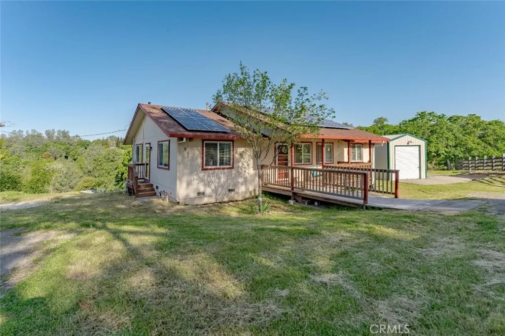 Prime location! This beautifully rebuilt single-story home, completed in 2014, sits in the highly desirable East Foothills of Oroville, offering 0.67 acres of breathtaking views and endless potential. This home combines modern comfort with country tranquility. The spacious open floor plan features vaulted ceilings, a large kitchen island, newer appliances, luxury vinyl plank flooring, and indoor laundry. All bedrooms are generously sized, and every room includes a ceiling fan for added comfort. Additional features include a tankless water heater, dual-pane windows, a whole house fan, and ample storage space. Outside, you'll find a detached garage, an extra storage shed, and a sprinkler system. The solar system with 24 panels ensures energy efficiency Solar system is included with the property. Seller will continue making the monthly loan payments; the solar is a personal loan and not attached to the property. Buyer will be responsible for arranging ongoing system maintenance. PG&E is the utility provider that receives the solar energy production. Buyer also has the option to remove the system at their own expense; removal costs will not be the responsibility of the seller. Public utilities are in place, with the exception of the septic system. Located just minutes from downtown Oroville, this home is ideal for first-time buyers, retirees, or anyone seeking a peaceful, modern retreat. Homes in this prime location don't last long act quickly.