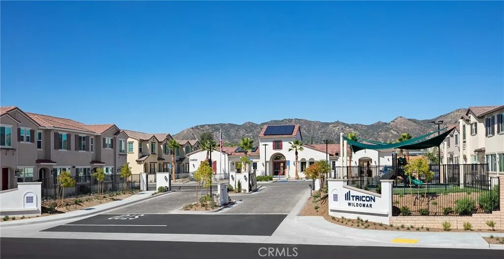 This home is professionally managed by Tricon Residential, dedicated to creating exceptional rental experiences. Featuring one bedroom plus den, one and one half bathrooms, and approximately 973 square feet, this townhome offers a high standard of rental living, supported by a team that puts residents first. Tricon Wildomar is a beautiful Spanish-inspired gated community centrally located just one hour from San Diego and Orange County. Enjoy virtually maintenance-free living with the conveniences of solar and smart home technology including automatic thermostat control and keyless front door entry all designed to provide an exceptional living experience. Every home includes an open-concept design, gourmet kitchens with quartz countertops and stainless steel appliances. Enjoy well-maintained amenities including a sparking pool with wifi, tot lot/playground, dog park, fitness center and clubhouse with rentable event space.