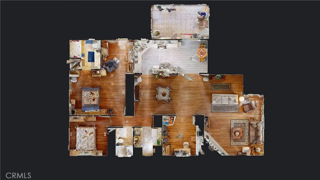 Welcome to Whispering Palms a beautifully maintained 55+ gated community in the heart of Hemet. This spacious 2-bedroom, 2-bathroom manufactured home with bonus den/office sits on a permanent foundation on its own lot (you own the land and do not pay space rent), offering 1,744 sq ft of comfortable living space designed with functionality and ease in mind. The HOA dues cover water, trash and sewer, plus a well-maintained clubhouse, pool and community. Step inside to discover an open floor plan featuring a large living area with a cozy fireplace flowing into a spacious dining room, tile and bamboo flooring throughout. The recently refurbished, light-filled kitchen has new quartz countertops, a breakfast nook, lots of cabinet space, new appliances including a French door refrigerator with filtered water, plus a filtered water system at the new sink. The bonus enclosed patio extends your living area, ideal for hobbies, workout equipment, or an additional sitting room. The primary suite includes a private bath with a soaking tub, walk-in shower, and dual vanities. Enjoy the extra retreat area for reading or TV, with a patio door leading to the covered patio. A secondary bedroom, guest bath, and an indoor laundry area add convenience and thoughtful design. The attached 2-car garage provides extra storage, and the low-maintenance landscaping with block wall fencing offers privacy and charm. Located on a 4,356 sq ft lot with a composition roof and central HVAC, this home is ideal for those seeking peaceful, secure, and low-maintenance living. Whether youre looking to downsize or