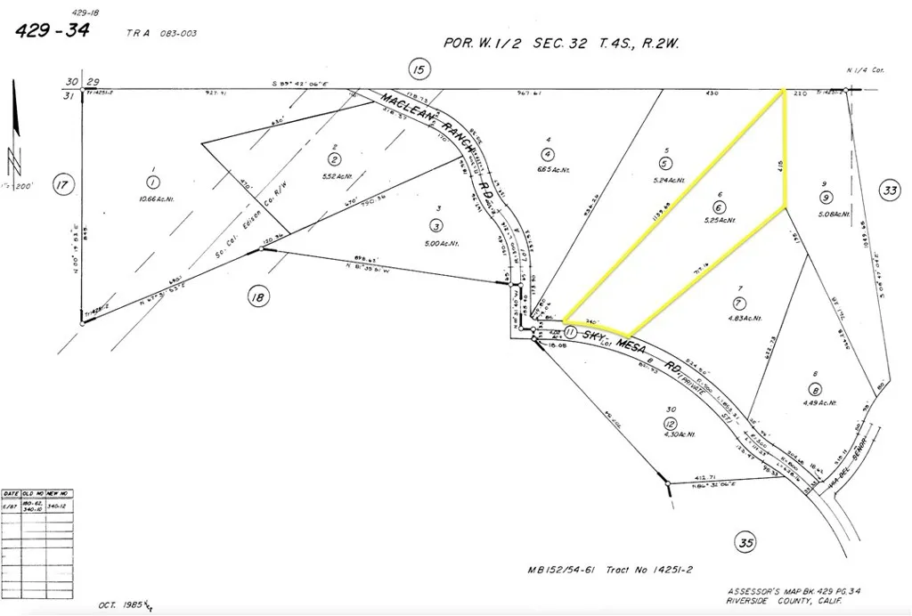 Discover the potential of this exceptional 5.25-acre estate view lot nestled within the prestigious gated community of The Ranches at Sky Mesa. This rare offering is ideal for builders, contractors, or investors seeking privacy, natural beauty, and high-end development potential. Perched at approximately 2,700+ feet in elevation, the north-facing parcel boasts breathtaking, unobstructed views of snow-capped mountains, Lake Perris, Phantom Lake, rolling hills, and dramatic sunsets. The natural terrain features striking rock outcroppingsideal for designing custom waterfalls, sparkling pools, and serene ponds to create a true resort-style oasis. This exclusive community features million-dollar custom homes, underground utilities, and excellent 24/7 gated security enhanced by high-tech surveillance cameras. Each parcel maintains a minimum of five acres and allows up to four horses, with mobile homes prohibited to preserve the estate-quality aesthetic. Homes must be a minimum of 2,800 square feet with at least a three-car garage, ensuring architectural consistency and luxury throughout the neighborhood. A site plan has already been prepared for this lot, offering a head start on your dream home or investment project. Utilities include district water, electric, and phone lines located in the paved street, and the property is in a propane and septic area. The lot has clearly marked corners and is accessible through gated entry points north off Nuevo Road and south off Juniper Flats Road. There's ample space for additional structures such as patios, garages, horse facilities, walki