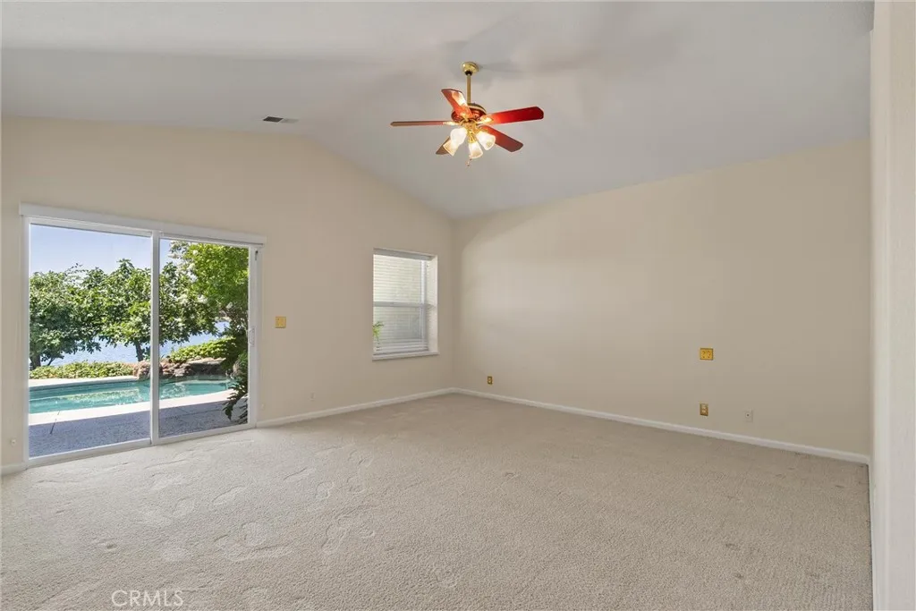 A very rare opportunity to live on the lake in Sierra Sunrise Village, a 55 and older community with OWNED SOLAR. PG&E payments under $20 a month!!! This house has a large open floor plan with a lot of natural light. The living room has a gas fireplace with a built-in bookshelf and cabinetry. Large glass sliders that lead directly to the gorgeous inground gunite pool and lake. The beautiful open kitchen has granite counters, light oak cabinets, an eating bar, and a desk area. Master bedroom has 2 spacious walk-in closets and a glass sliding door to have direct access to the pool and lake. Master bathroom includes a walk in shower and a large jacuzzi tub that stays hot for 30 minutes. Other amenities include surround sound, recessed lighting, ceiling fans throughout, skylights, whole house fan, and a large indoor laundry area. Neighborhood offers parks, walking trails, and security patrol. Updates included newer gutter guards, newer oven, newer refrigerator, newer dishwasher, newer microwave, and a newer hot water heater. Bathrooms have new tiled floors, sinks, toilets, and granite counter tops. Both the interior and exterior have been professionally painted. Low HOA fees. This house won't last long on the market! It's like living in your own personal Oasis! Schedule your tour today!
