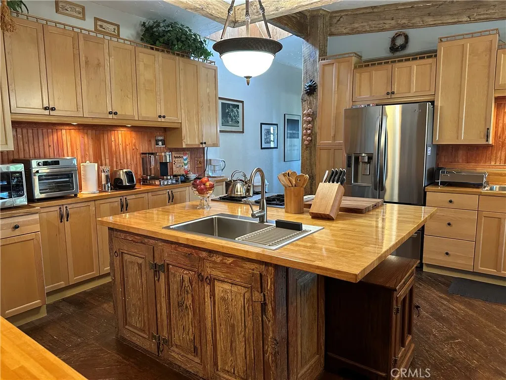 Welcome to this charming, one-of-a-kind 2,757 square foot custom pool home set on 9.37 scenic acres located on a PAVED road in Anza. Thoughtfully designed, this spacious residence offers 3 bedrooms and 3 bathrooms, with 2 bedrooms and 2 baths located on the main level, and a fully finished basement that adds a third bedroom, additional bathroom, a laundry room, and a generous bonus space ideal for a game room or secondary living area. Enter through a charming custom arched doorway into an open living room featuring a cozy fireplace, which flows seamlessly into the open country kitchen. The kitchen showcases rustic wood countertops, cabinetry, and exposed wood ceiling beams that enhance its warm, inviting feel and is equipped with a Jenn-Air gas stove with optional griddle and grill options, and an electric convection oven. Adjacent to the kitchen, the dining area is adorned with unique custom windows and a wood-burning stoveperfect for intimate family meals. The family room offers a second wood-burning stove, striking custom windows, open-beam ceilings, and a sliding glass door that leads to the porch overlooking the expansive pool area, offering breathtaking valley views. A convenient half bath is located just off the family room. On the lower level, youll find a large walk-in pantry and storage area, along with a full bathroom that includes direct outdoor accessan ideal setup for outdoor entertaining and poolside gatherings. There is also a small fenced orchard that includes peach, pear, apple, plum and apricot trees and a separate small fenced area with both red and gree