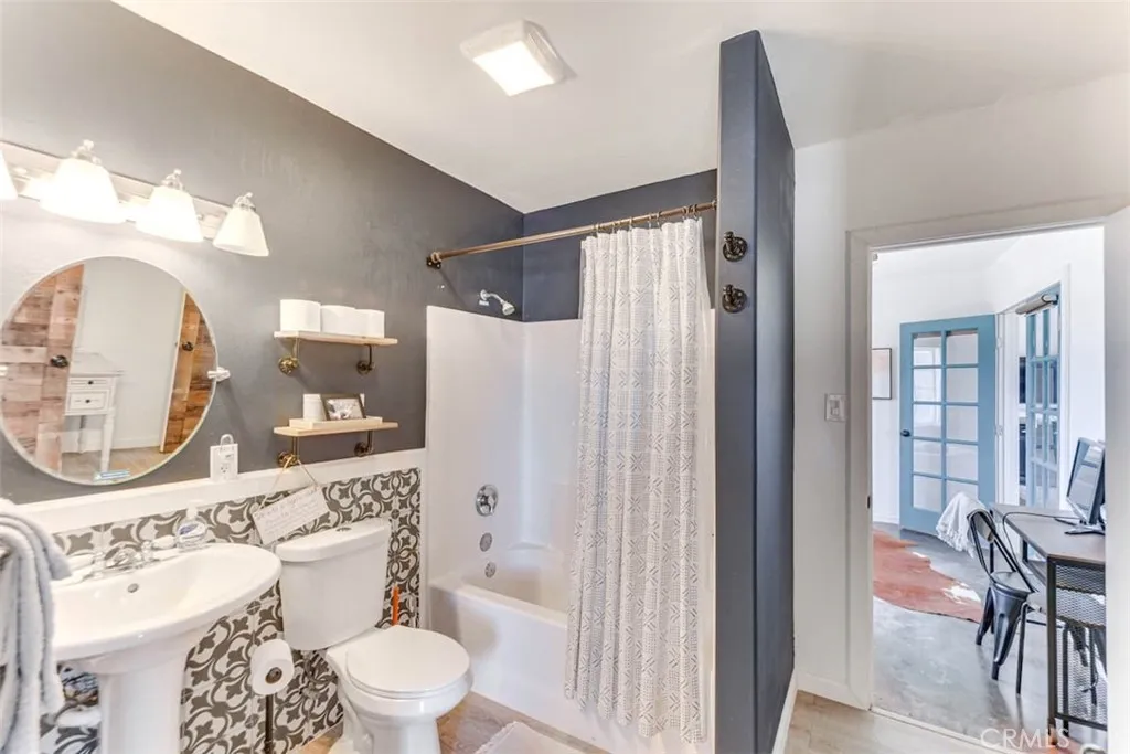 This fully furnished 3 bed, 2 bath home with an open-concept layout with high ceilings and sleek concrete floors, offers modern touches with its rustic charm desert living. There are 2 bedrooms and 1 bath in the main house, and a separate 1 bed, 1 bath unit with it's own entranceperfect for guests, mother in law, or rental income. Nestled right in front of Goat Mountain in Landers, enjoy stunning views and peaceful surroundings under the Milky Way and beautiful desert skies in the jacuzzi. 2 acres of the 5 acre parcel is fenced so that you ca have pets or kids can play without you worrying, and there is a tool shed and additional electrical panel for any future projects of expanding the property. La Copine, The Integratron, OHV area in Johnson Valley, Joshua Tree, Giant Rock, and more are just a few minutes drive, and there's a plethora of BLM land just out your back yard to the north east.