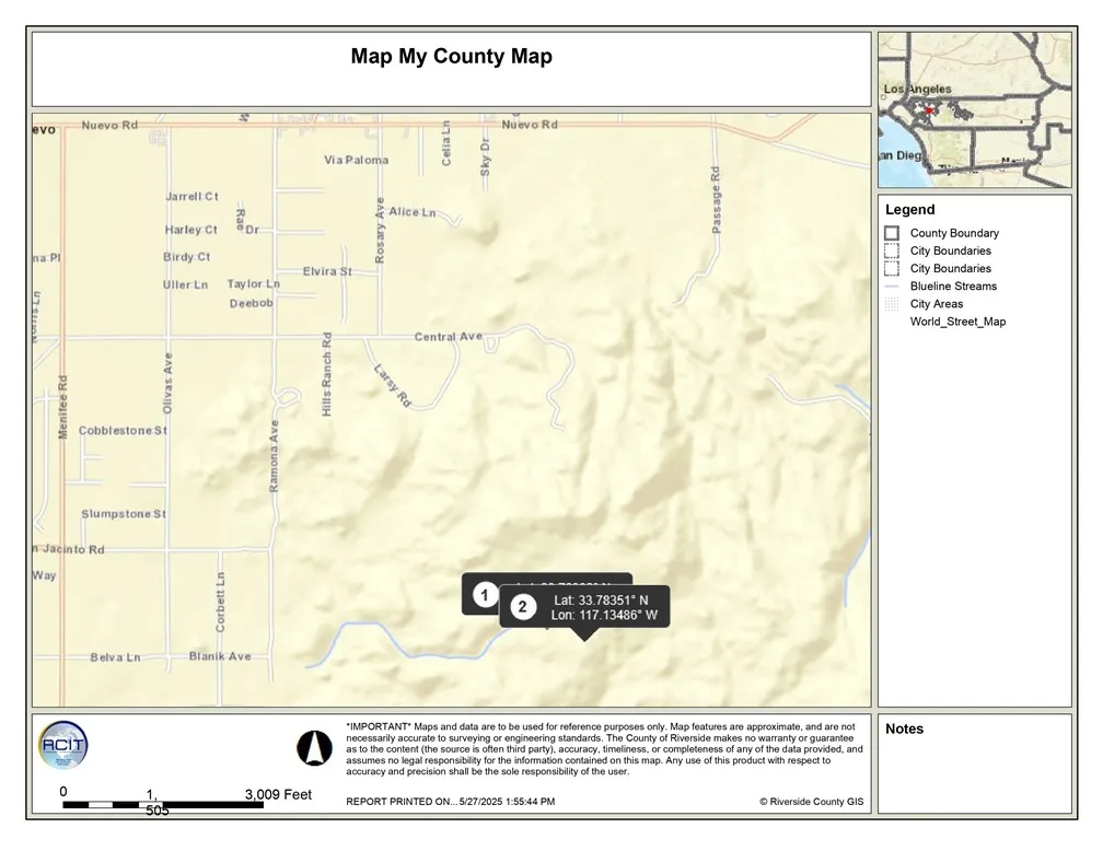 Over 45 Acres available land in Menifee area. This area is also known as Romoland or Homeland or Nuevo. Appears to be county land and may not have true city designation. Accessable at the top of a hill via dirt road. Area has fantastic views.