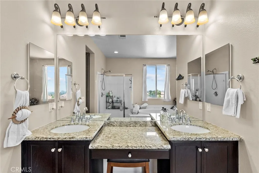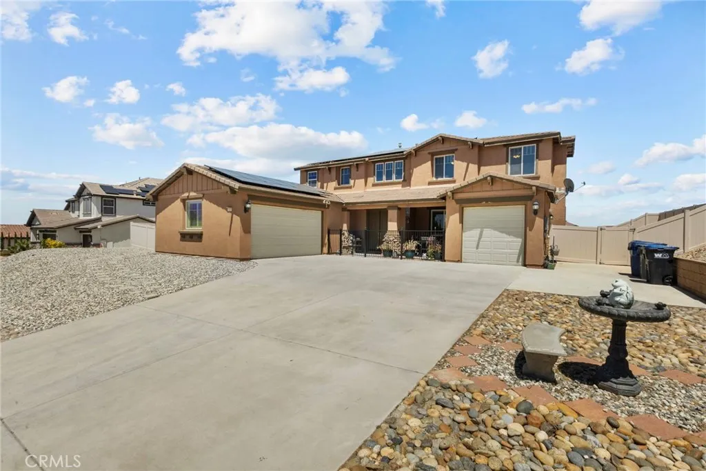 Discover exceptional Southern California living in this expansive 5-bedroom, 4-bathroom estate, offered at $920,000. Spanning 3,599 sq. ft. on a generous 13,013 sq. ft. lot, this beautifully upgraded homebuilt in 2009 by the highly respected local builder Pulte Homesis nestled in the prestigious Sonoma Ranch Tract, known for its large homes and prime West Side location just minutes from the freeway. Inside, enjoy upgraded Luxury Vinyl Plank flooring, fresh interior and exterior paint, a grand French door entry, formal living and dining rooms, recessed lighting throughout, wood shutters on every window, a huge upstairs loft with a dramatic double staircase, and a downstairs bedroom and full bath. The gourmet kitchen features a walk-in pantry, butlers pantry, tile flooring, and flows into a spacious laundry room with utility sink. A 3-car garage includes a separate finished bay with heating and A/C, ideal for a gym or workshop. Outside, your private oasis awaits with a brand-new pebble tech pool and spa, solar color-changing lights, new pool and spa heaters, solar lighting throughout the yard, RV parking (unfinished), and a gated front entry for added privacy. Energy-efficient upgrades include a 36-panel solar lease with Sun Strong, plus a backup battery and two separate HVAC systems. No HOA, no Mello Roos or CFD taxes, and included washer, dryer, and refrigerator make this move-in ready dream home an unbeatable value. 24/7 audio and video surveillance add peace of mindthis home truly has it all!
