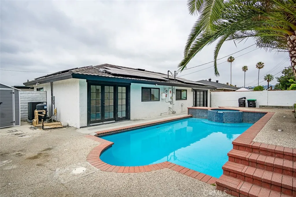 Presenting a stunning Remodeled 4 Bedroom 2 Bath layout with a sparkling swimming pool. This meticulously designed home offers a blend of comfort and practicality, starting with amazing white shaker kitchen cabinets featuring a lazy Susan for convenience. The Calcatta Biscotti quartz counter tops, paired with a brushed nickel sink and faucet to create a great culinary experience for the cooks in the family. Top of the line Samsung stove and dishwasher also included. Throughout the home you will find vinyl flooring that is durable as it is beautiful. Recessed lighting shines every corner of the home, while ceiling fans in all the bedrooms ensure year-round comfort. In the den and living room, brushed nickel fans with extra feature. Indulge in relaxation in the spa-like bathrooms, where Bianca Fiore quartz vanity tops and Kohler fixtures create an atmosphere of luxury. Outside, the front yard is surrounded by lush Marathon grass and hardscape Portland pebbles. The concrete pavers offer the perfect stepping stones, while the sprinkler timer ensures easy maintenance year-round. Much more! A Must-See!