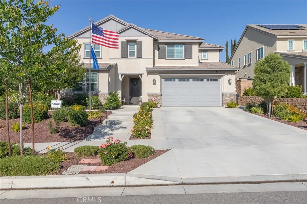 Want the perks of owning a new home but don't want to spend a fortune on landscaping and a pool? Come see this BEAUTIFULLY built home by Mastercraft Residential, with FULLY PAID OFF SOLAR included, NO HOA, and an amazing community feel! This home has 5 Bedrooms, 4 Bathrooms, 2,908 square feet, and an entertainers backyard complete with swimming pool, custom BBQ area, fire pit, and multiple seating areas. As you approach this home you'll notice the meticulously cared for front landscaping with flowers, bushes, and trees. As you come in the front door you'll be greeted by open spaces and luxury. The tile floors extend throughout the downstairs including the open concept living area as well as the bedroom and bathroom downstairs. The kitchen has a massive island perfect for Saturday morning breakfasts and gatherings that opens up to the dining and family room areas. As you move up the stairs you'll find the built in shelves perfect for your inner bookworm! You will also find 4 additional bedrooms, all with attached bathrooms. The Primary suite is expansive with a calming ensuite and a massive walk-in closet. You'll fall in love with this home and all it has to offer. Some additional features make this an efficient home with dual pane windows, tankless water heater, solar, drip system landscaping, etc. Set up a showing today!