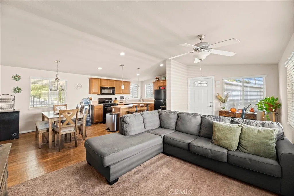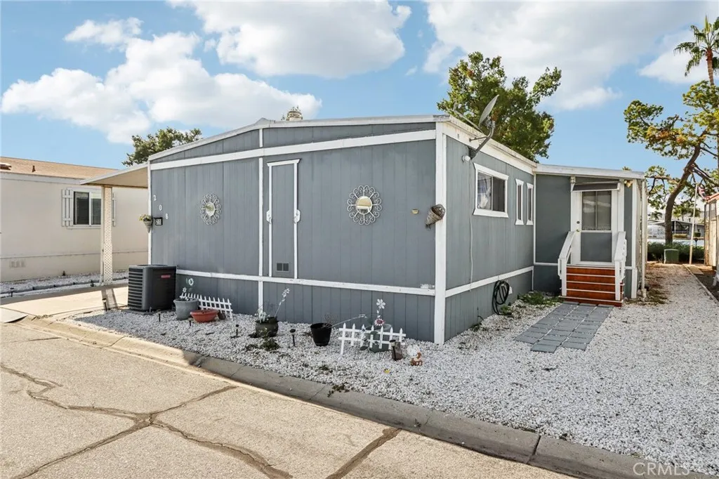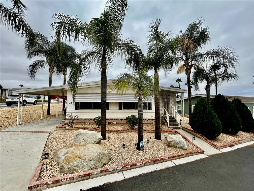 Welcome to this charming 3 bedroom, 2 bath double wide home in Hemet Valley Mobile Home Estates. There are no age restrictions in this park, so it's great for a starter family. Whether you're relaxing in the generous living areas or enjoying time in the cozy bedrooms, this home is designed to suit your lifestyle, and it offers the perfect balance of peace and convenience. There is a spacious kitchen with an island and plenty of counter space. This home is filled with lots of natural light and a cozy atmosphere. Tucked away at the end of the street, this home offers enhanced privacy and reduced through-traffic. The carport located on the side of the home can fit up to 3 cars. The gated entrance to the community ensures a secure environment so you can enjoy a sense of safety and peace of mind. The refrigerator, washer, dryer and 2 sheds outside are included in the sale. This community offers a pool, clubhouse with a billiard room, laundry area, kids' playground and also a car wash. Space rent includes water, trash and sewer. Centrally located near shopping and schools.