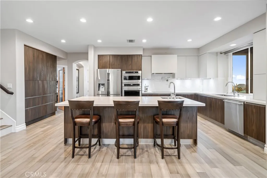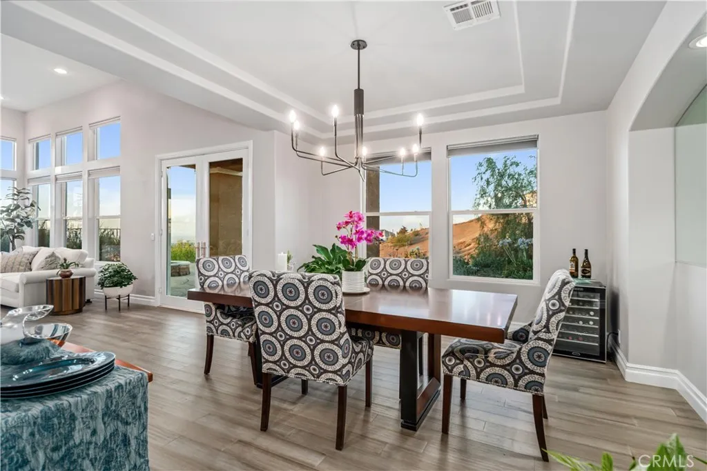 ***LIVE BEAUTIFULLY*** Nestled in the scenic foothills of West Palmdale, this exceptional 6-bed, 6-bath estate offers nearly 4,600 square feet of refined living space and showcases breathtaking panoramic views of the mountains, city lights, and tranquil lake. Designed with luxury and durability in mind, the property is fully gated with a custom entry and enclosed by a fire-hardened block wall with stone pillarsmeeting LA County fire inspection standards and enhanced by a fire hydrant conveniently located at the property line. Inside, the home blends sophisticated finishes with thoughtful upgrades. The expansive kitchen is a true chefs dream, featuring a GE Monogram appliance suite including a 36 induction cooktop, convection oven, and Advantium speed oven, along with dual sinks, dual dishwashersincluding a Miele knock to opena pot filler, under-cabinet lighting, and a massive 5' x 9' island topped with luxurious Caesarstone Statuario Nuvo. The adjacent formal dining room is illuminated by a modern chandelier and framed by motorized cellular blinds, while the spacious living room opens to the backyard through premium Marvin French doors. Throughout the main level, bamboo flooring with upgraded underlayment ensures comfort, insulation, and a clean, contemporary aesthetic. The 2 downstair suites are perfect for visitors or multigenerational living. Upstairs, the expansive primary suite is a spa-like escape, featuring dual custom vanities with quartz countertops and built-in power strips, lighted anti-fog mirrors, a soaking tub, and a glass-enclosed shower wrapped in Livorno Ve