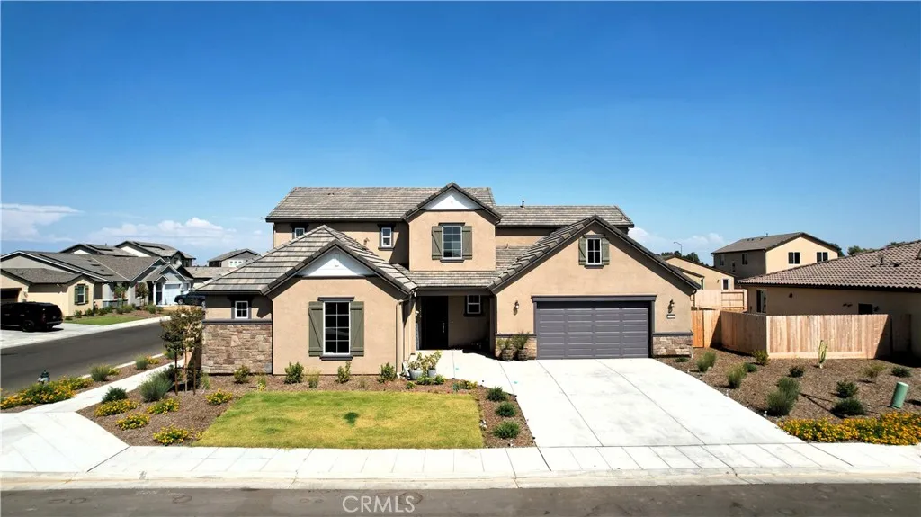 Welcome Home! This radiant 5-bedroom, 3.5-bath stunner rests on one of the largest corner lots in the neighborhood and features a spacious 3-car garage, perfect for your vehicles, gear, or workshop dreams. Located in a picturesque neighborhood served by Clovis Unified School District, it blends top-tier education with curb appeal and undeniable community pride. From the wide, welcoming streets to the peaceful community vibe, this one feels like home from the moment you arrive. Soaring ceilings and sun-kissed interiors greet you at the door. The spacious Primary Suite includes an oversized walk-in closet and a large en-suite bath with dual vanities for peak functionality and comfort. A versatile flex room awaits your dream office, home gym, creative retreat or even a potential 5th bedroom. The chef-inspired kitchen delivers on every level, stone counters, stainless steel gas appliances, and more cabinetry than you'll know what to do with. Entertain in your formal living room, host cozy nights in the family room, or simply enjoy the smart layout with a conveniently located powder room. Upstairs features a massive loft, ideal for movie nights, hobbies, or play. A large Secondary Suite with own private full bath, and two additional bedrooms serviced by a third full bath, round out the perfect floor plan. Outside, the yard is a blank slate, ready for a garden, pool, or your backyard masterpiece. This is more than must-see. It's a must-experience.