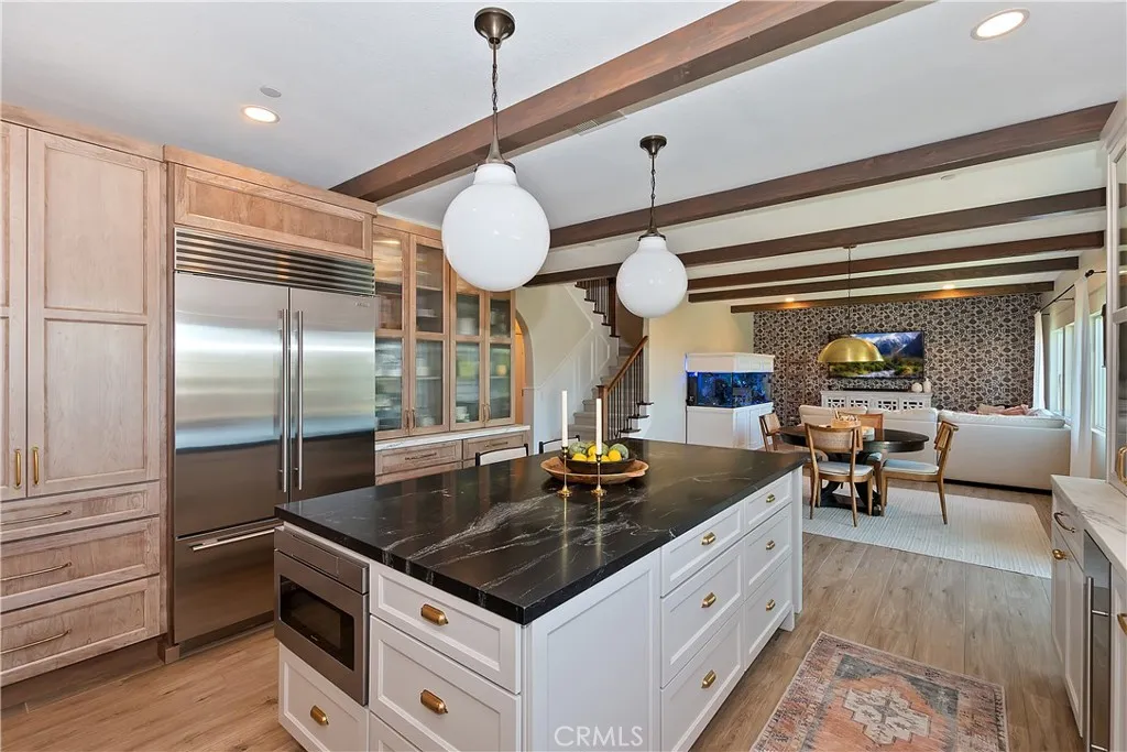 REDUCED!!! Come see what sets this home apart. The great room includes a custom archway, exposed beams, and expansive windows that fill the space with natural light, creating a warm, open feel, while wainscoting and a handcrafted stair railing add unique character. The kitchen, redesigned with Pepper and Olive Interiors, is the heart of the home. It features premium Medallion cabinets and a full suite of luxury appliances, including a Sub-Zero refrigerator, ILVE range, Scotsman pellet ice machine, and Miele dishwasher. Counter-to-ceiling Moroccan tile pairs with marble countertops and backsplash for a stunning visual effect. The expansive 8-foot granite island offers generous space to prep meals, serve drinks, and gather with friends and family, inviting conversation while you entertain. At the far end, a hidden bar with mosaic tile and pocket doors adds elegant, tucked-away storage that blends seamlessly into the cabinetry. The home includes a private Additional Dwelling Unit (ADU) with its own front and backyard access. Complete with a bedroom, bath, living area, kitchenette, and laundry hook-ups, it's ideal for guests, multigenerational living, or potential rental income. Outside, the low-maintenance backyard surrounds a custom-designed elevated patio made of pavers alongside a three-tiered fountain. Perched just above the Morongo Golf Club at Tukwet Canyon, enjoy sunrise to sunset 180-degree mountain views and take in the lush greenery of the valley below. HOA amenities include high-speed internet, a community gym, swimming pools, and neighborhood parks. Conveniently lo