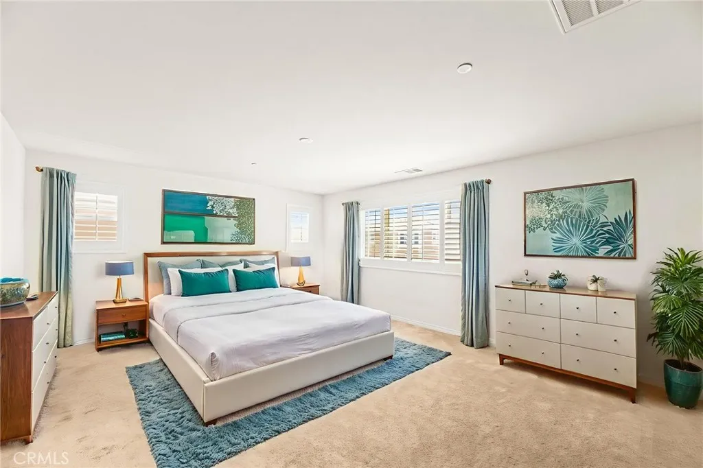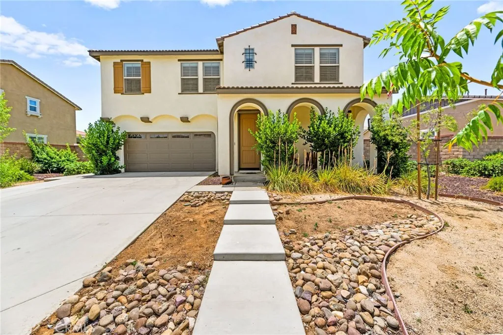 Possible VA assumption. Turnkey Dream Home in Menifee! Solar will be included. This 4 bed, 3 bath two-story home built in 2021 offers modern living in a desirable community with pool, walking paths, and more. Conveniently located near shopping, dining, and schools. Enjoy an open floor plan with natural light, an island kitchen with a large walk-in pantry, recessed lighting, and upgraded shutter blinds. One bedroom and full bath are downstairsperfect for guests or multigenerational living. Upstairs features a spacious loft and three bedrooms with walk-in closets. The laundry room is its own room and offers ample storage. Freshly installed carpet throughout. Step outside to a private backyard with a covered patio, ceiling fans, concrete seating area, and large side yards. Solar panels and a 2-car garage complete this move-in ready gem. Dont miss this beautifully maintained home!