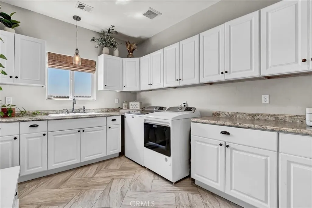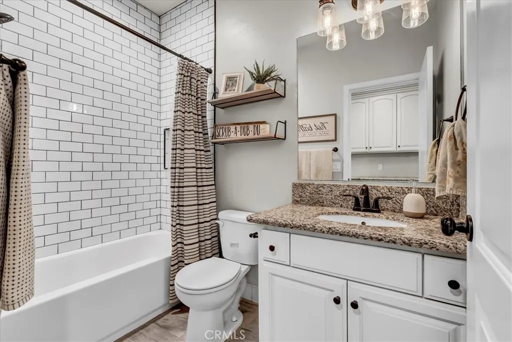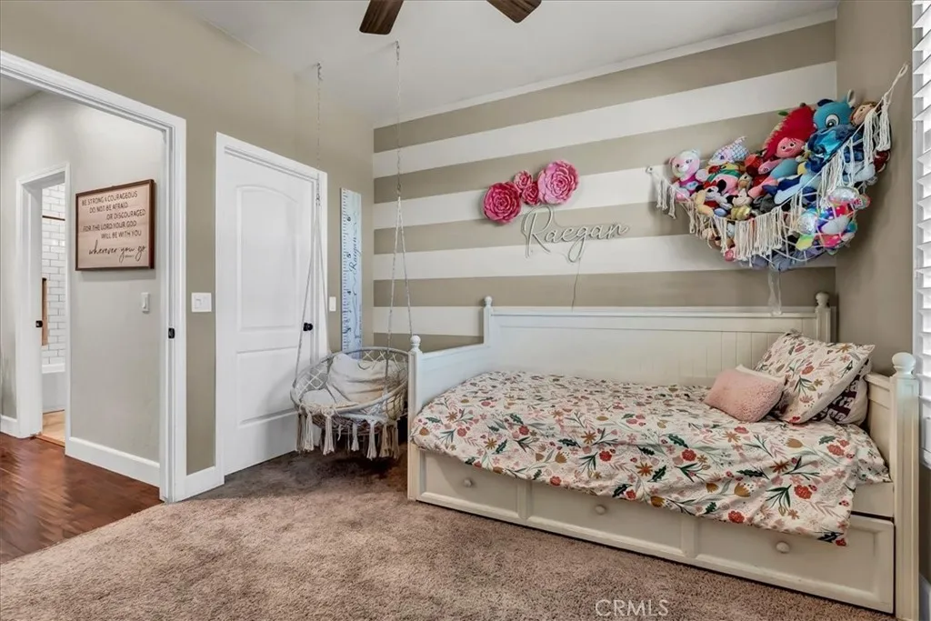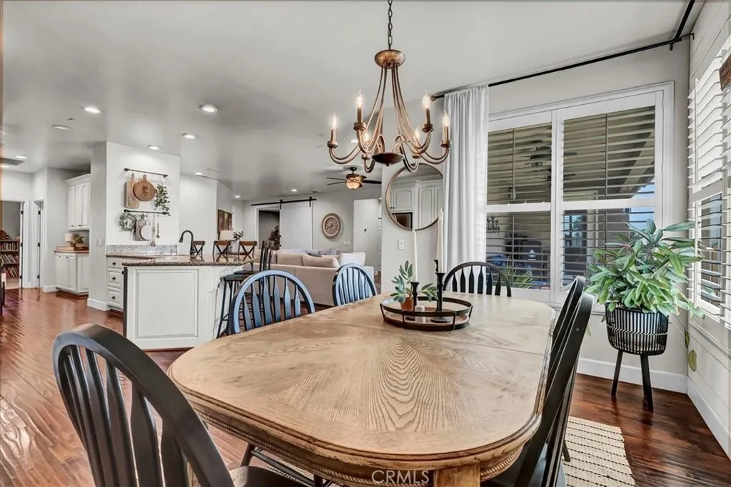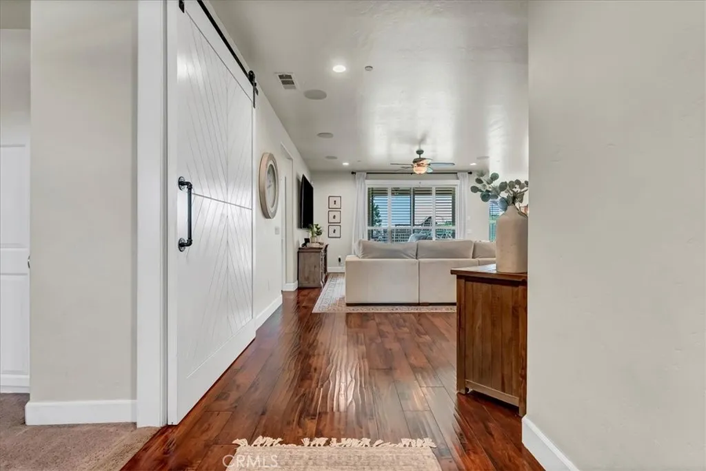 Welcome home to this beautifully updated 4-bedroom, 2-bath country retreat that blends modern functionality with rural charm. Situated in SE Visalia & surrounded by farmland views, this home welcomes you with lush curb appeal, a wide driveway, and a welcoming front porch. Inside, the open-concept floor plan boasts rich hardwood flooring, plantation shutters, and thoughtful upgrades throughout. The entertainers kitchen features granite countertops, stainless steel appliances, and ample bar seating, flowing seamlessly into the dining and living areas - ideal for both daily living and entertaining. The large in-home laundry room adds convenience, while a bonus playroom offers flexible space for a home office, hobby room, or study zone. The private primary suite includes a spa-like bathroom with dual sinks, a soaking tub, walk-in shower, and large closet. Three additional bedrooms provide comfortable living for family or guests. Step outside to a fenced backyard designed for fun and relaxation - featuring a covered patio, in-ground trampoline, sandbox play area, and plenty of green space. And dont miss the fully finished "man cave" with its own gym and movie theater setup - your ultimate retreat right at home. Leased solar adds energy efficiency, rounding out this turnkey property. Experience peaceful country living just minutes from town, with space to spread out and enjoy. Schedule your private showing today!