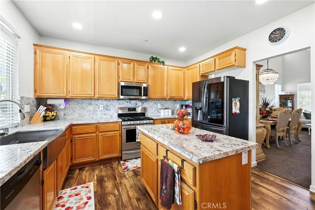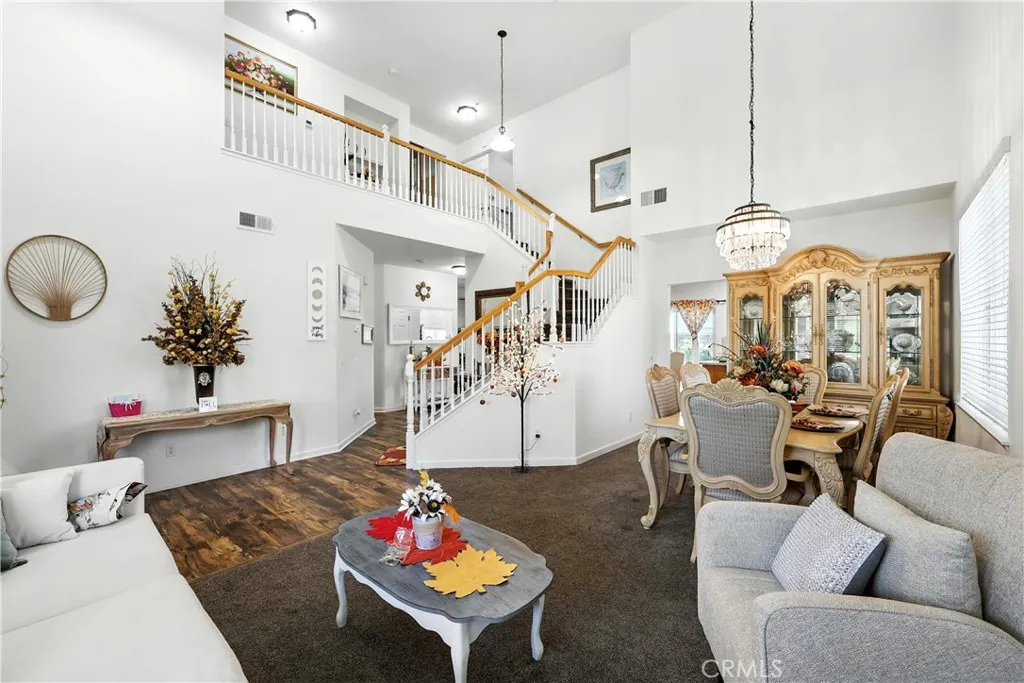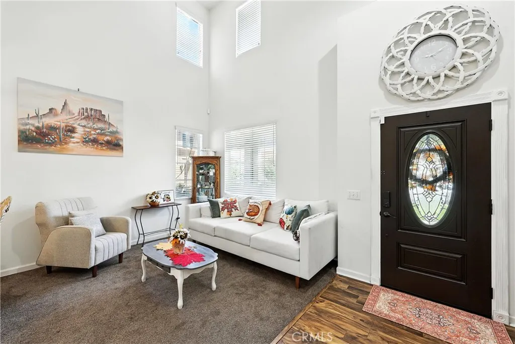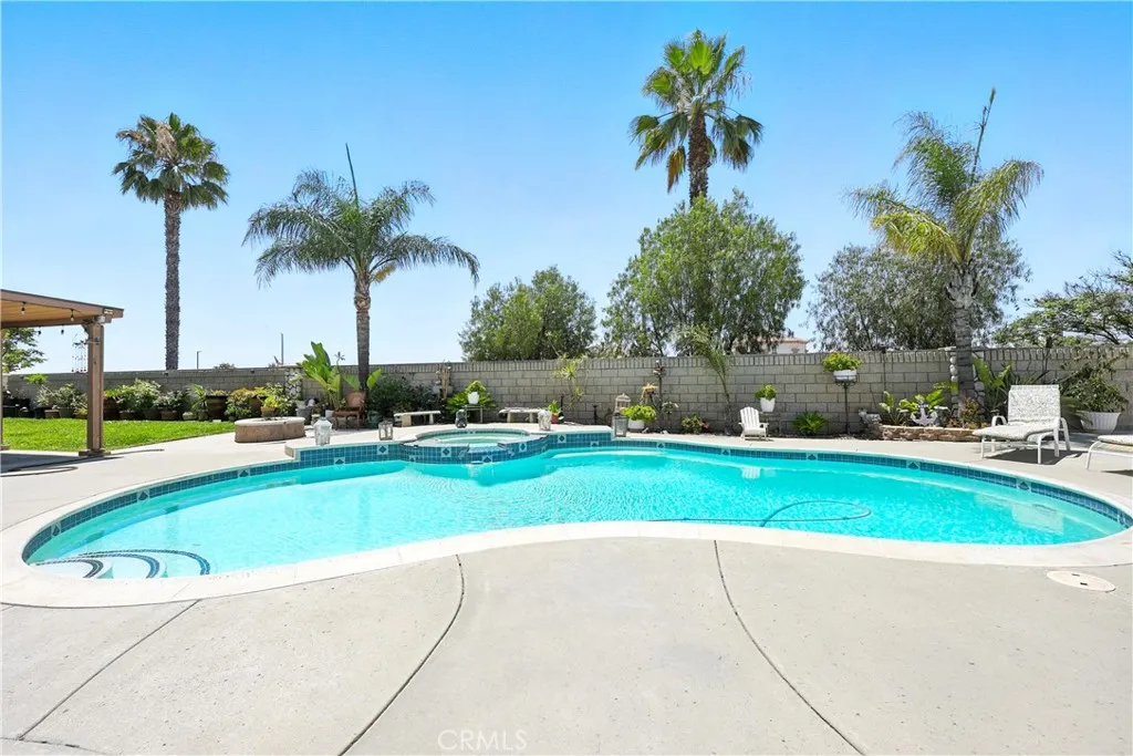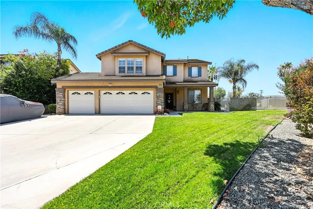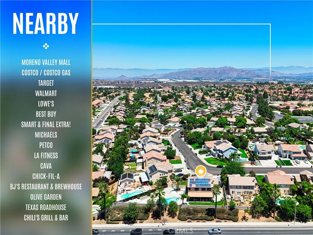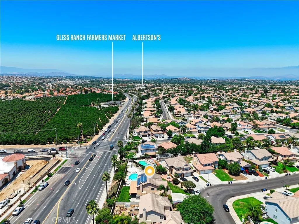 Stunning Pool Home in Highly Desirable Orangecrest Neighborhood Welcome to this beautiful two-story home located in the sought-after Orangecrest community, just minutes from the 215 freeway. This spacious residence features soaring vaulted ceilings and an inviting layout perfect for comfortable living and entertaining. As you step inside, you're greeted by a formal living room with plush neutral carpeting that flows seamlessly into the hallway with stylish laminate flooring. The kitchen boasts elegant granite countertops, rich oak cabinetry, and opens to the cozy family roomideal for everyday living. Downstairs, you'll find a full bedroom and bathroom with a tub/shower comboperfect for guests or multigenerational living. Upstairs offers three additional bedrooms, two full bathrooms, and a generous loft that can easily be used as a fifth bedroom, home office, or playroom. The primary suite features double door entry, abundant natural light, and a spa-like bathroom with dual sinks, a soaking tub, and a separate shower. Step outside to your private backyard oasis, complete with a sparkling pool, spa, and built-in barbecue island with a palapaperfect for hosting family and friends. Additional highlights include owned solar panels for energy efficiency and cost savings. Dont miss the opportunity to own this exceptional home!
