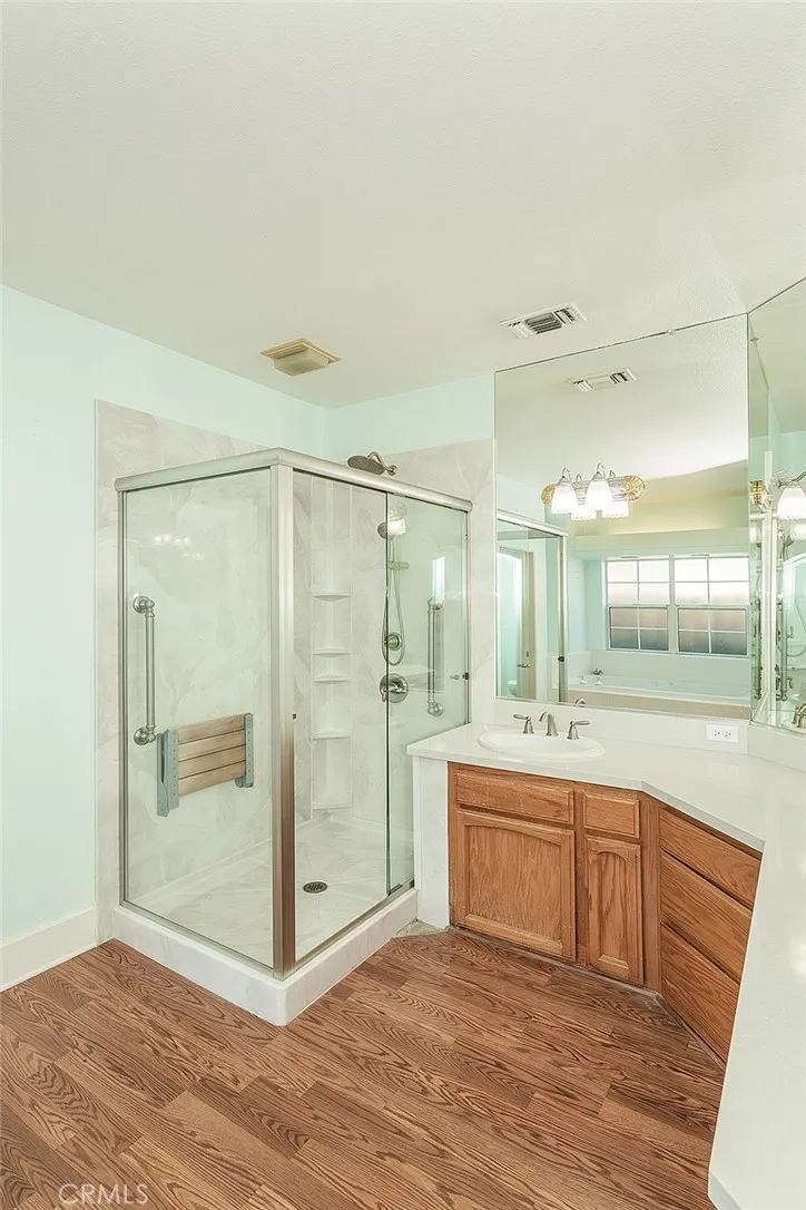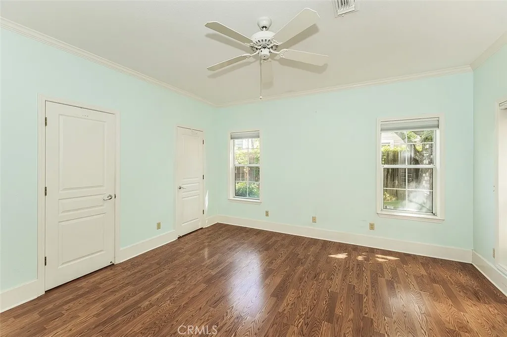 Price reduced $50,000! You have arrived at this very desirable Northeast Fresno community. Enjoy this lovely 4 bedrooms and 2 bathrooms home with an excellent floor plan. The spacious great room has high ceilings and a wood insert fireplace for your relaxation and comfort. The room is accented with plantation shutters and ceiling fan plus laminate wood flooring in many other interior rooms. The kitchen is complete with a center island, double ovens, gas cooktop, microwave and convenient pantry. The large primary bedroom and very large main bathroom is downstairs with French doors to the rear yard. The bathroom has been beautifully remodeled with quartz countertops and double sinks plus a lovely rain shower. The upstairs living space features a loft balcony area, builtin bookcases, and 3 very large bedrooms. The adjacent bathroom has double sinks and another door that opens to a very handy extra storage attic. In addition you will be impressed with all the storage cabinets inside and in the garage too. Relax and entertain in the well designed rear yard with a patio, synthetic grass and drip irrigation. This delightful home is near shopping, dining and Clovis Unified schools.