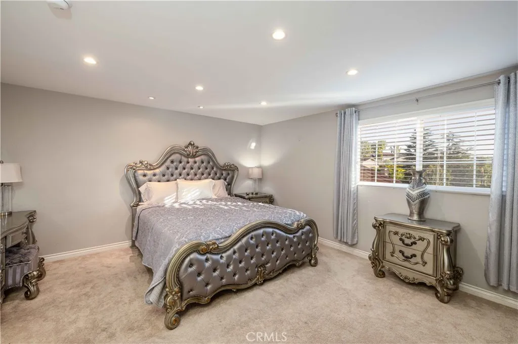 Stunning Two-Story Home Nestled in a Peaceful Cul-de-Sac, Featuring Scenic Views of Hills, Trees, and a Lush Greenbelt. The Dramatic Entry Boasts Leaded Glass Double Doors, Soaring Cathedral Ceilings, and a Striking Open Banister. The Spacious Formal Living Room with Fireplace Flows into the Elegant Dining Area. This Home Offers 4 Generously Sized Bedrooms with Custom Closet Organizers, Including One Bedroom and One Fully Remodeled Bathroom Conveniently Located on the Main Floor. Enjoy Approximately 2,689 Sq Ft of Comfortable Living Space. The Fully Remodeled Kitchen Features Newer Soft-Close Cabinetry, Granite Countertops, Stainless Steel Appliances, and a Charming Breakfast Nook. The Expansive Family Room Offers a Cozy Fireplace and Sliding Glass Doors That Open to a Beautifully Landscaped Backyard. Additional Features Include an EV Charger, Interior Laundry Room, Upgraded Travertine, Wood, and Carpet Flooring in all bedrooms on 2nd floor, Crown Molding, Wood Blinds and Shutters, a Security System, and Water Softener & Purification Systems. The Attached 3-Car Garage Includes Overhead Storage. The resort-style backyard is perfect for entertaining, featuring a sparkling pool and spa, built-in BBQ island, and stunning viewsall set on a generous ~12,000 sq ft lot. Conveniently located within walking distance to the highly rated El Rancho Charter School.