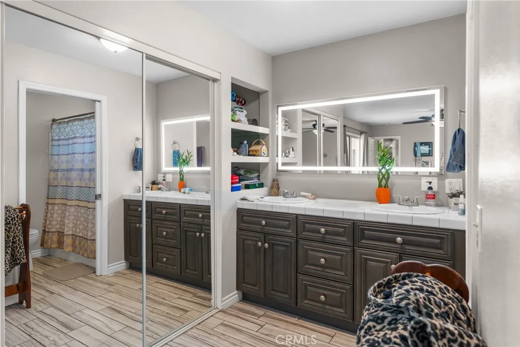 Back on the Market. Nestled in a peaceful cul-de-sac in Yucaipa, this home is thoughtfully updated with modern upgrades. The kitchen showcases elegant gray cabinetry, quartz countertops, and sleek tile flooring, with stainless steel appliances. The inviting living room features stunning wood-beamed ceilings and a cozy wood-burning fireplace. The spacious layout includes a large primary suite with dual closets offering its own private en-suite bathroom, a second bedroom with its own private bathroom and a third full bath complete with a luxurious soaking tub. Enjoy indoor-outdoor flow with sliding glass doors from both the living room and primary suite opening to a serene back patio and lush, private yard, perfect for morning coffee or evening gatherings. Additional highlights include a drive-through garage with direct access to the backyard, perfect for entertaining or accommodating recreational needs. A great home for entertaining and gathering with friends and family!