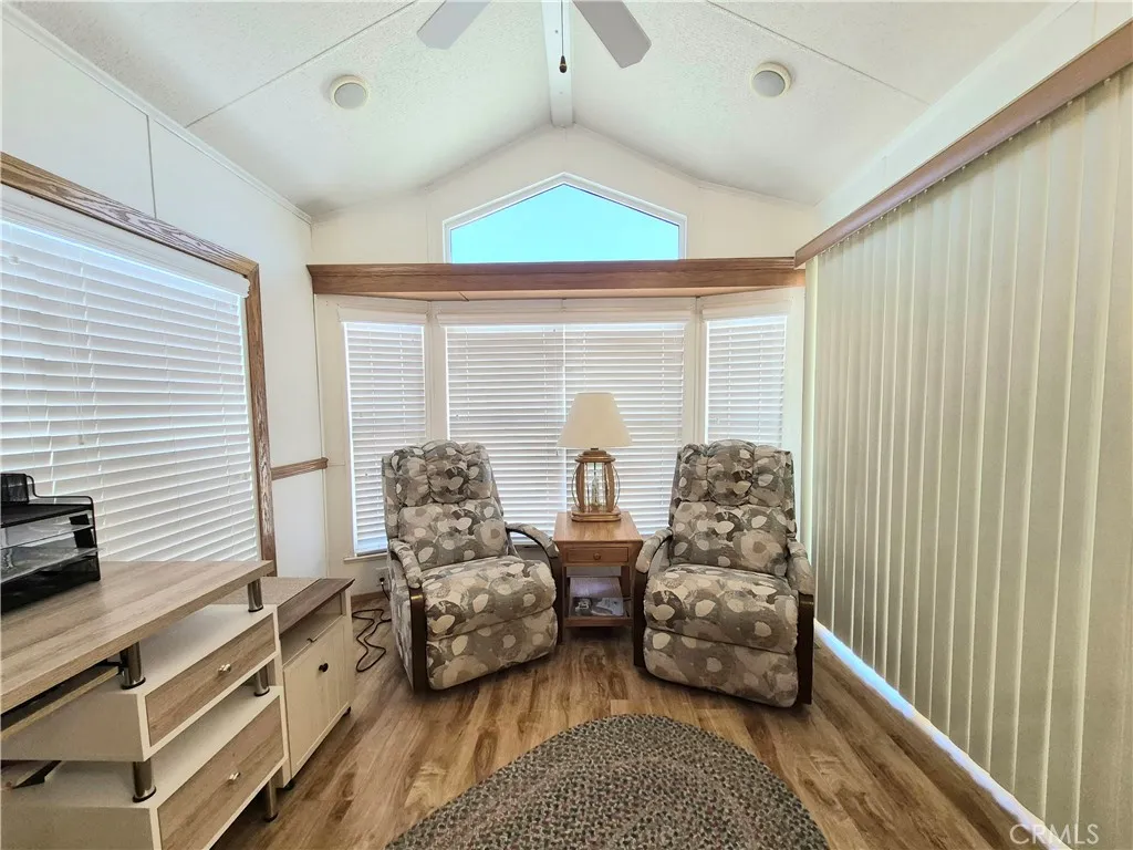 Welcome home to Mountain Shadows! Come see this gorgeous home set in the gated 55+ resort community of Mountain Shadows where you OWN the land beneath your home with NO space rent. This stylishly 2004 home boasts a spacious bedroom with ample room for entertaining guests whether inside the beautiful light and bright living room or in back with the lush and relaxing outdoor setting This beautiful corner lot home has no neighbors on one side and is adjacent to a lovely greenbelt. Natural light cascades through the home with and showcases the elegant interior, open floor plan and spacious exterior. Smart updates include wood flooring, dual paned windows, and recessed Lighting. Central air/heat and all large appliances come with the home! Your chef will appreciate the propane stove, microwave and refrigerator. So much storage and a separate cabinets for all your valuables. This is where luxury meets functionality with so much usable space & storage. The exterior is appointed with easy-to-maintain xeriscape. Spend more time enjoying the sunsets as this gem is tucked away yet close enough to clubhouses and all amenities. The shed is nicely insulated and has ample storage. Mountain Shadows features state of the art amenities including pool, spa, club house, many events for the active lifestyle: Community dinners, dances, and Saturday Breakfast. So much to do in this gated community with wide streets and many amenities. This scenic oasis awaits you. With a low HOA of just $244 per month, you'll enjoy essential utilities like water, sewer, trash, basic cable, and internet. Plus, Mou