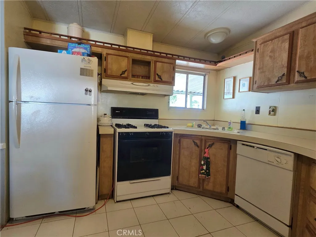 CHARMING 3 BEDROOM AND 2 BATHROOM MANUFACTURED HOME IN A PRIME LOCATION WITHIN AN ALL AGES RESORT-STYLE GATED COMMUNITY. This beauty offers a spacious floorplan with lots of windows to let the natural light in. Upon entering you will find a huge living room with stylish exposed beams offering an eye catching architectural touch. The eating area is connected to the huge living room which features a ceiling fan to help keep you cool & comfortable while dining. The kitchen is conveniently next to the dining area. The kitchen makes cooking pleasurable & a breeze due to its u-shaped design. It offers long countertops, plenty of cabinets for cooking storage, a double sink, a stove, refrigerator, dishwasher & window above the sink to let natural light in. There are 3 bedrooms, one of which is a primary bedroom. Primary bedroom is expansive & includes a ceiling fan, walk-in closet, huge windows & a recently remodeled chic ensuite bathroom which features a large sink, big countertop & huge cabinet for plenty of storage. Luxuriate in the beautiful bathtub after a long day of work. There are two windows in the primary bathroom to let the cheerful morning sunshine in - what a great way to start your day! Enjoy BBQ's, lounging & the breeze on the huge porch located on the side of this home. Bask in the beautiful California weather in your backyard w/ drought tolerant & low maintenance landscaping or plant a vegetable garden for yourself! The carport offers a long driveway which can accommodate up to 3 cars. Save on water bills with the drought tolerant & low maintenance landscaping in t