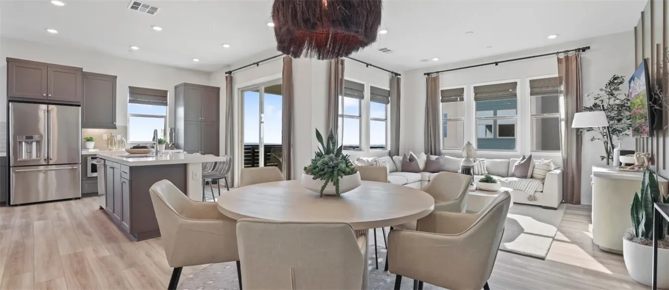 The first level of this three-story townhome is host to a bedroom thats perfect for overnight guests or a home office. The Great Room, kitchen and dining room are arranged among an open floorplan on the second level that makes multitasking and entertaining a breeze. A deck complements the open living space. Three more bedrooms can be found on the top floor. Your own personal driveway is included. About the neighborhood: Metro Heights is a luxury gated masterplan community of new homes on the hills above Montebello, CA.