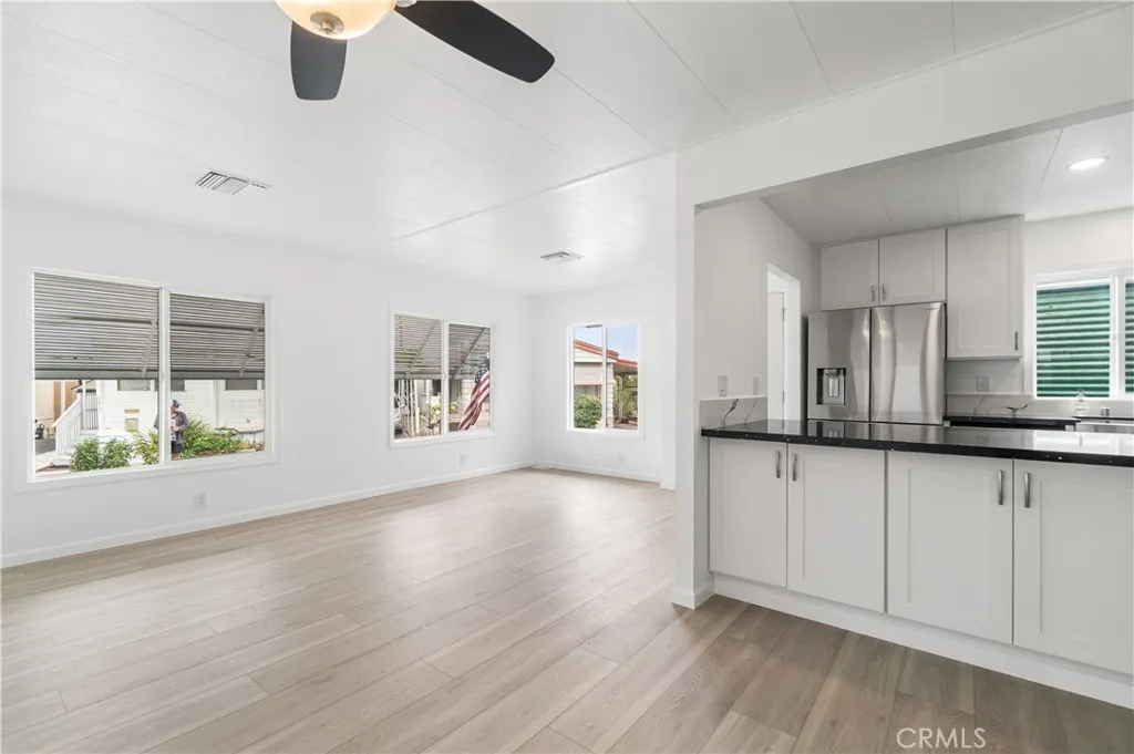 Stunning High-End $60,000 Fully Remodeled Home in a Quiet 55+ Community. Seller Motivated, Bring Offer. Welcome to this beautifully remodeled 2-bedroom, 2-bathroom home featuring a spacious master suite with private bath walk-in-shower and walk-in closet. Every inch of this home has been thoughtfully custom updated, blending modern comfort with timeless style. Enjoy a newer kitchen complete with Samsung stainless steel appliancesincluding side by side refrigerator, dishwasher, oven range, microwave. The open-concept layout features a center island, Quartz countertops, stylish backsplash, utility sink and self-closing cabinets and drawers for a sleek, functional space. The two remodeled bathrooms include a walk-in shower in (Master Bath) and a shower/tub combo in the (Hall Bath) new vanities with Quartz countertops, new faucets, new mirrors, new toilets, and fixtures. Additional upgrades include new vinyl plank waterproof flooring, drywall, windows, electrical, recessed lighting, copper plumbing, fixtures, doors, fresh paint all throughout. A new remote ceiling fan in the dining room enhances airflow, while abundant natural light and ocean breezes keep the home airy and bright. For convenience there is an inside individual Laundry Room with brand new Samsung washer/dryer included. Outdoor living is easy with a covered front and back porch, a private backyard and front yard for gardening, and a storage shed. A three-car covered carport adds convenience, and all utilitiesgas, water, and electricityare connected. The exterior material of the home is aluminum siding and is termi