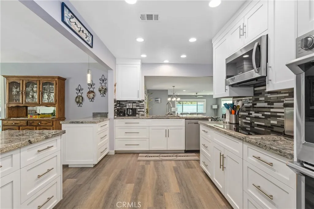 Welcome to this beautifully upgraded 3-bedroom home, ideally located on a corner lot at the entrance of a cul-de-sac street in Lakewood. The open-concept layout seamlessly connects the kitchen, living room, and family room-creating a warm and inviting space perfect for both everyday living and entertaining. The remodeled kitchen is a true centerpiece, featuring elegant Granite countertops, wine fridge, ample cabinetry, and a layout that opens directly to the main living areas. Both bathrooms have been tastefully remodeled with modern finishes, including a walk-in shower and matching Corian counters. Each of the three bedrooms provides generous closet space, with the primary suite boasting a walk-in closet for added convenience. The family room is filled with natural light and includes enclosed cabinetry for stackable laundry, with direct access to a private covered patio and backyardideal for relaxing or hosting guests. Recent upgrades include a newer roof and AC system, electrical panel, windows, interior doors, interior and exterior paint, Honeycomb window coverings and 4-year-old solar panels. With its prime location, thoughtful improvements, and welcoming layout, this Lakewood gem is ready to be your next home.