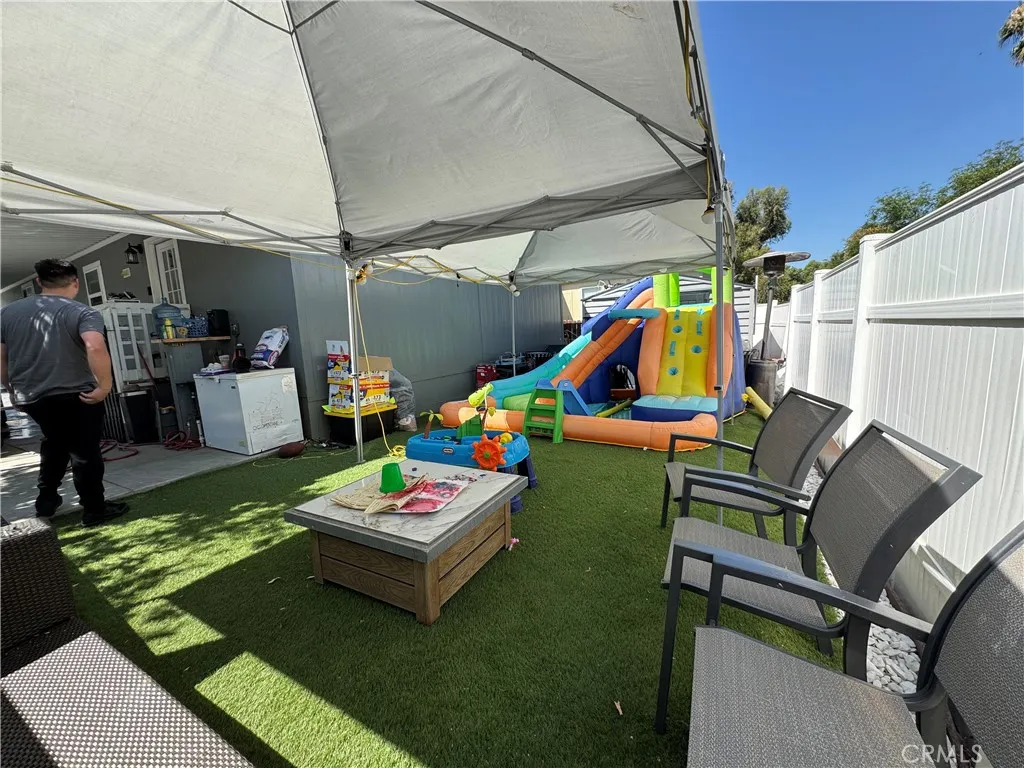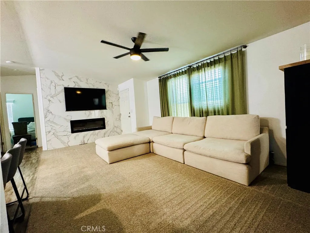 Welcome to Cadena Creek Mobile Home Park, a community that welcomes people of all ages. Here, you will find a recently remodeled manufactured home with an appealing, spacious open floor plan featuring three bedrooms and two baths. The living room and dining rooms have high ceilings, which give the home an airy, welcoming vibe. The living room features a modern gas-lit fireplace. The dining area is conveniently located off the living room with easy access to the kitchen. The galley kitchen is well-appointed, utilizing every space to the best advantage. The large primary room offers plenty of space and a nice-sized closet, as well as an ensuite private bathroom. The secondary rooms are spacious as well. You will enjoy the convenience of having an indoor laundry area. The backyard has a fenced-in area that can be used as a children's play area or converted into your own space to relax while enjoying quiet summer evenings. The Cadena Creek community offers desirable amenities, such as clubhouse with banquet facilities, a community pool with a spa, a community playground, and a poolside picnic area. The park offers boat/RV and off-street parking. Cadena Creek Park is in close proximity to freeways, eateries, shopping, schools, and more.