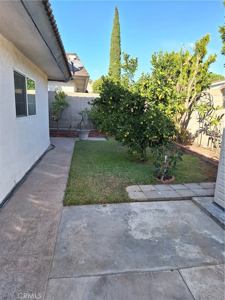 Exceptionally clean, upgraded single story 3 bedroom, 2 bath, 1 car garage on quiet tree lined street. Private gated entry leads you to lushly landscaped, beautiful, serene entry. Owners have taken extra care to ready this home for new tenants. Laminate wood floors throughout, smooth ceilings, newer light fixtures and dual pane windows are just some of the upgrades. Open floorplan with spacious kitchen. Plenty of cabinets space and extra pantry in the hall. All 3 bedrooms are quite large. Primary bedroom with en-suite bath, walk-in closet and sliding door to back yard. Full size laundry hookups in garage. Patio and yard are beautifully maintained and include several fruit trees, lemons, blood oranges and more. Location is easy freeway access to the 22 or 55 fwys. Shopping and restaurants close by. Those looking to find a private, quiet sanctuary for their home will be ecstatic when they see this home.