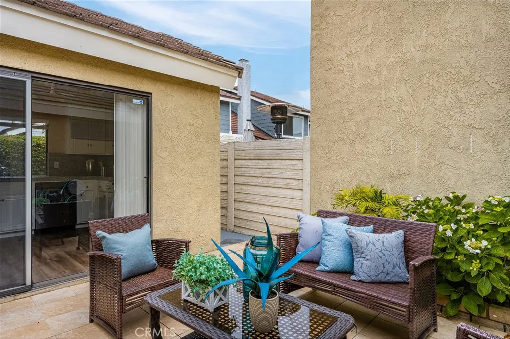 PRICE IMPROVEMENT!! Welcome to this stunning, very rare single-story home situated on a quiet interior cul-de-sac. With no interior steps, this home offers a convenient and accessible layout. The open floor plan and meticulous maintenance make it truly exceptional. As you enter, an abundance of windows floods the interior with natural light, accentuating the living room's vaulted ceiling and a custom marble fireplace. The expansive dining room, overlooking the private backyard, provides an elegant space for entertaining large gatherings. The remodeled kitchen is a chef's dream, featuring white cabinetry, stainless steel appliances (including a new range and microwave), recessed lighting, ample storage, and delightful views of both the patio and the private atrium. The master suite opens to the atrium and boasts a generously sized walk-in closet with custom organizers. The remodeled ensuite bathroom showcases a walk-in shower and dual sinks. The attached 2-car garage offers built-in storage, while the long driveway ensures convenient parking. This move-in ready home is enhanced by recessed lighting throughout, ceiling fans in all bedrooms, and a large, private wrap-around yard. The luxury vinyl plank flooring throughout is perfect for those with allergies or pets, as it is allergy-friendly and easy to maintain. Newer AC and furnace provide added comfort. With only one shared wall, this home offers privacy and tranquility. Every aspect of this home has been meticulously maintained, reflecting true pride of ownership. Conveniently located within walking distance of all three a