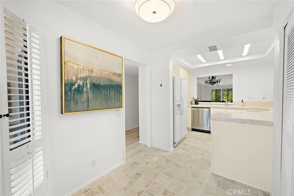 Corner Unit with Updates & Expansion Potential in Gated Baja Finisterra Welcome to 25911 Orbita a desirable corner unit nestled in the gated Baja Finisterra community of Mission Viejo. This spacious 2-bedroom, 2-bathroom condo offers tree-lined views, abundant natural light, and a flexible floor plan with potential to convert into a 3-bedroom home, as seen in other units within the neighborhood. Freshly updated with brand new carpet, luxury vinyl plank flooring, and new interior paint, this home is move-in ready yet offers opportunities for minor improvements to truly make it your own. The open-concept living and dining area includes vaulted ceilings and peaceful views of surrounding greenery, providing a serene and private atmosphere. The functional kitchen layout offers plenty of cabinet space, and the adjacent laundry area adds to everyday convenience. Located close to Lake Mission Viejo and to shopping, dining, and freeway access, this home combines comfort, location, and value in one of the area's most sought-after gated communities. Don't miss this chance to own a corner unit with upside potential in beautiful Baja Finisterra.