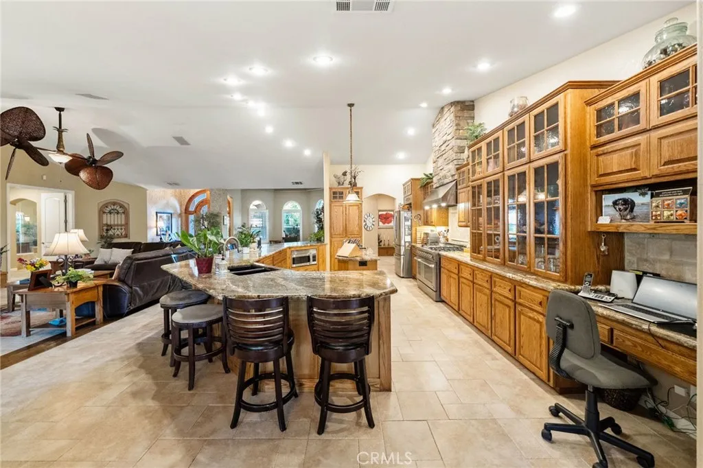 Price Correction! La Cresta, Murrieta Luxury Estate Elegance, Acreage & Timeless Living Experience elevated living on 5.57 private acres in Murrietas prestigious La Cresta community. This 3,106 sq ft single-level estate offers 3 spacious bedrooms and 3 baths, masterfully designed with towering 9-foot ceilings, cathedral accents, and luminous designer windows that bathe the interiors in natural light. A chefs kitchen steals the spotlight with granite slab countertops, custom cabinetry, an expansive dining island with sink, and open access to the entertainment-friendly living spaces. Host with style in the formal dining room, unwind in the serene breakfast nook, or relax by the grand stone fireplace. The owners suite is a retreat of its own featuring dual walk-in closets, direct patio access, and a spa-inspired bath with oversized soaking tub and dual-head shower. Secondary bedrooms are bright and generously sized, sharing a luxe full bath with impressive soaking tub, tiled walk-in shower and dual craftsmanship sinks. Step outside to your manicured paradise: an 8-ft-deep pool with strung lights, covered patio and additional pergola, lush landscaping, gated entry, panoramic views, and stereo outdoor speakers that set the mood for sunset gatherings. Fruit trees and your own private raised garden beds to created those delicious dishes. Horse lovers will appreciate direct access to scenic riding trails, with gently rolling terrain, and plenty of space for barns, paddocks, or arenas, your horses will thrive in harmony with the land. The expansive acreage and fenced perimeter pro