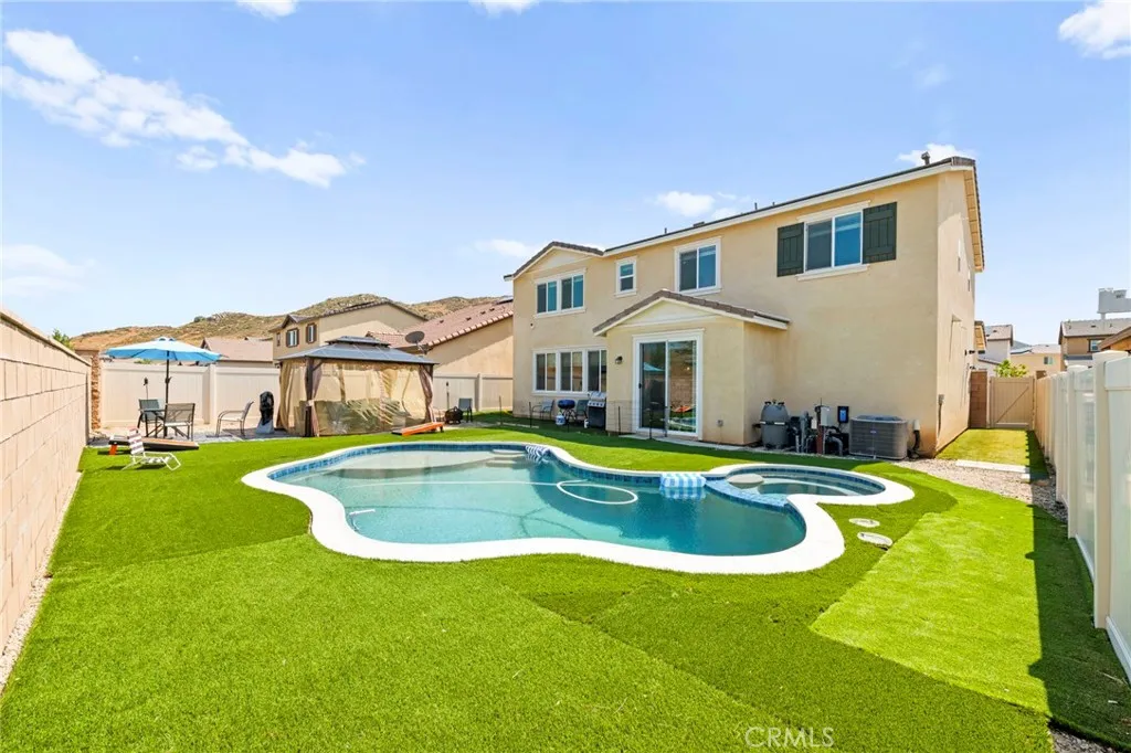 Welcome to this stylish and energy-efficient 4-bedroom, 3-bath home with everything youve been looking for! Enjoy a bright open floor plan, a modern kitchen perfect for entertaining, and a versatile upstairs loft. The first-floor bedroom with a full bath is ideal for guests or multi-gen living. Step outside to your private backyard oasis with a brand new pool, spa, and no rear neighbors. Additional features include solar panels, a tandem garage, and premium upgrades throughout. Move-in ready and packed with modern comfortsdont miss this one! Short sale opportunity for all! Subject to lender approval & being sold as is.