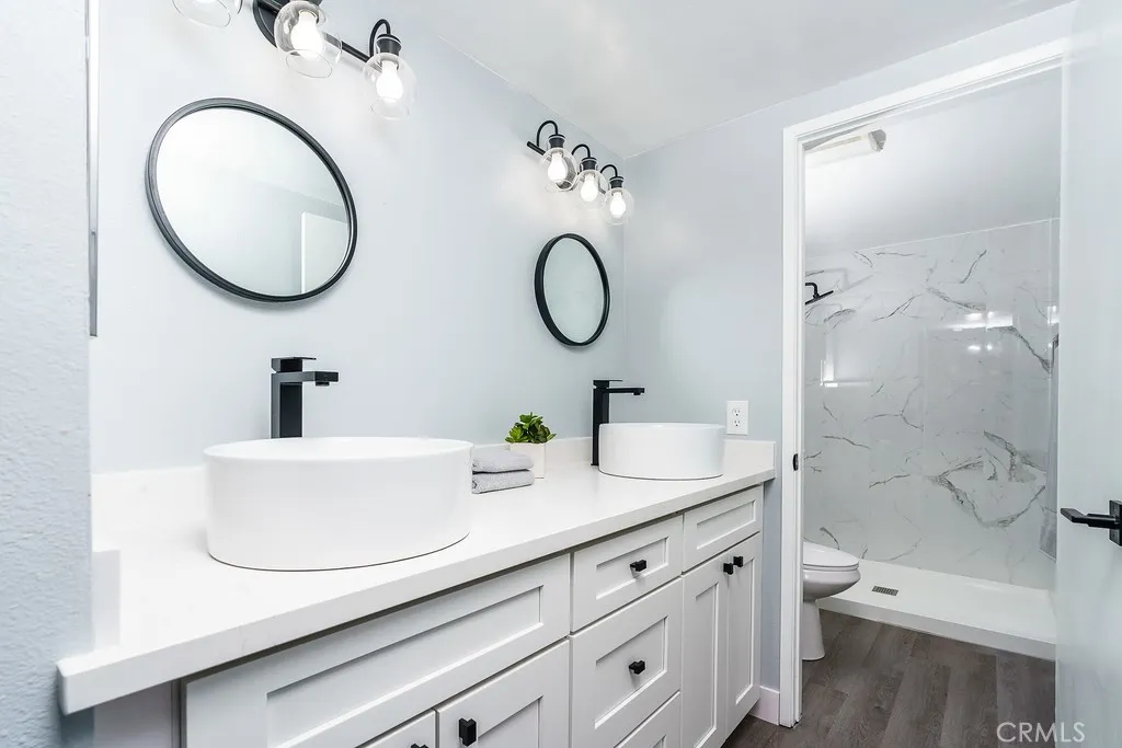 Welcome to the charming and peaceful South Temecula Rainbow Canyon Villages community, where you'll find the perfect home you've been searching for! This stunning, fully renovated home has been upgraded with exquisite finishes throughout as well as brand new water heater, air conditioner and furnace. From the moment you step inside, you'll be amazed by the beauty and quality of the renovations. The spacious living area greets you with high ceilings, new vinyl flooring, and a cozy brick fireplace that creates a warm and inviting atmosphere for gatherings. The kitchen has been beautifully remodeled with quartz countertops, new cabinetry, and stainless steel appliances. You'll love the large pantry and ample storage in the wall pantry cabinetry, perfect for the home chef. This home equipped with solar panels offers three bedrooms, each with large windows and ceiling fans, while the master bedroom features two separate closets. The remodeled primary bathroom boasts quartz countertops and new shower wall tile, adding to the luxurious feel of the space. In addition, both restrooms have large vanities and the guest bath has a separate soaking tub and shower. You'll appreciate the added bonus of a fourth bedroom, converted from the garage into an office, providing an ideal space for remote work or a guest room. With over 1,800 square feet of living space, you'll have plenty of room to relax and enjoy all that this home has to offer. Step outside into your spacious backyard, perfect for entertaining or simply relaxing under the extended covered patio surrounded by mature landscaping