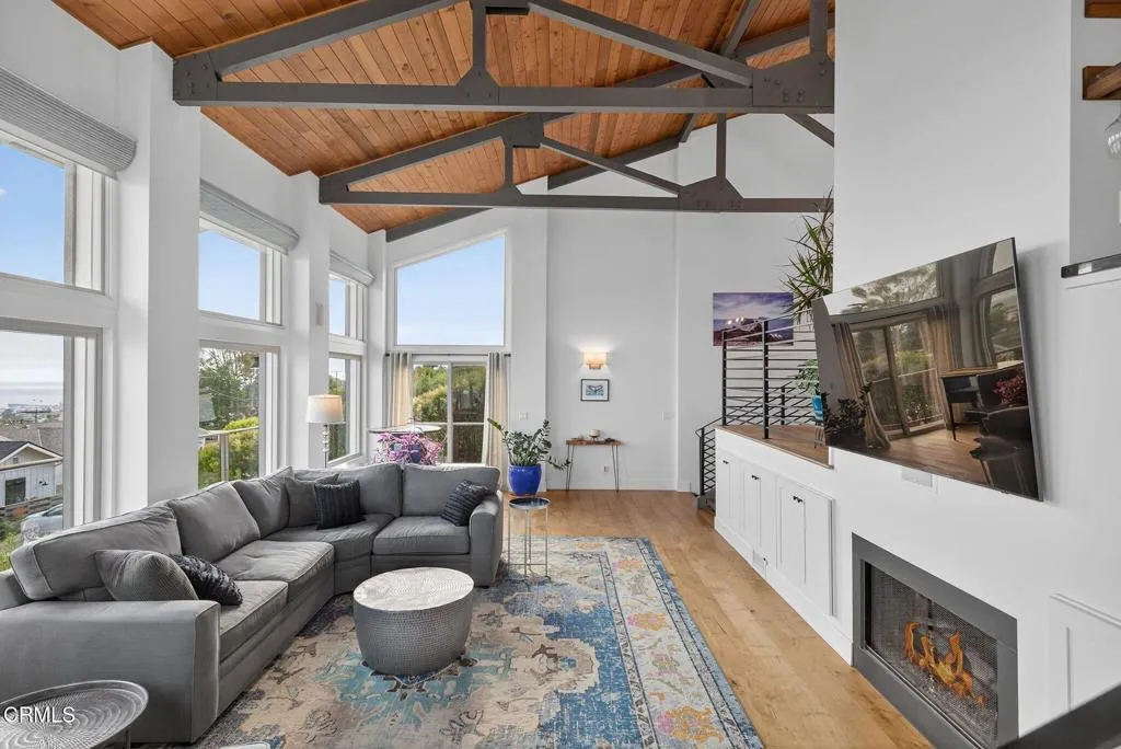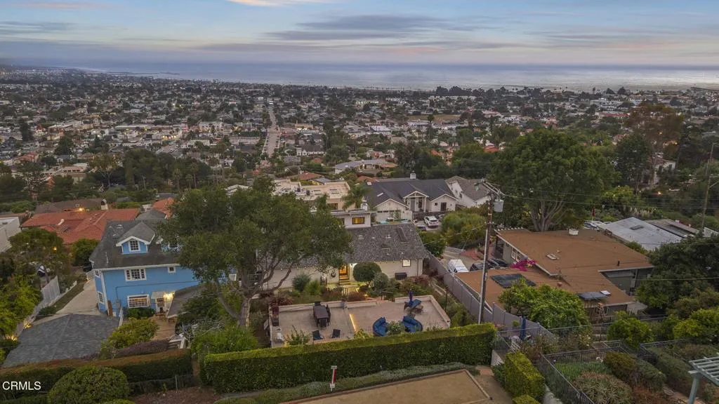 Unobstructed Ocean Views | Expanded Living Space | Ventura Heights Perched in the prestigious Ventura Heights neighborhood, this beautifully remodeled hillside home captures sweeping 180-degree views of the ocean, Channel Islands, pier, and mountains from nearly every angle. Thoughtfully expanded, the home now offers four bedrooms, an office, and three full bathrooms, including a stunning new lower level with a spacious bedroom, office, and full bath--ideal for multigenerational living, guests, or a private work-from-home retreat.Upstairs, the main level boasts a light-filled living room with vaulted, beamed ceilings, oak plank floors, and floor-to-ceiling windows that frame postcard-worthy sunsets. The primary suite features its own ocean-view deck, fireplace, and a spa-like bath with a soaking tub and oversized shower. Two additional bedrooms are connected by a cleverly designed Jack & Jill bath with dual vanities and privacy doors.Outdoor living is exceptional, with a beautifully landscaped backyard complete with a built-in BBQ, firepit, and view terrace, perfect for entertaining or unwinding. Off the living room, an additional outdoor kitchen with BBQ and refrigerator extends your hosting space, all while enjoying panoramic views from the front deck. Upgrades include a newer roof and HVAC. Nestled near the end of a quiet cul-de-sac among newly built homes, this residence combines timeless design, modern convenience, and unparalleled views in one of Ventura's most coveted hillside enclaves. Backyard also offers fruit trees including peach, dwarf avocado, fig and Santa Ro